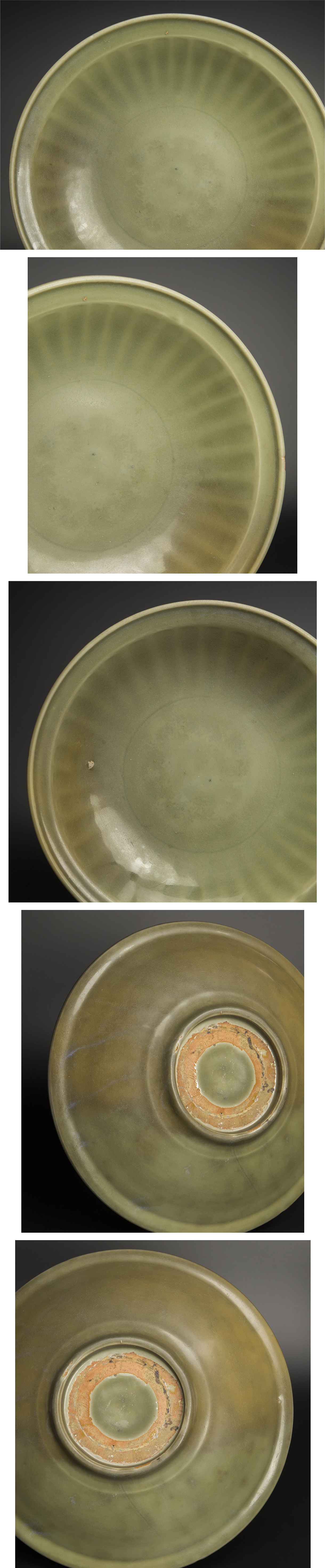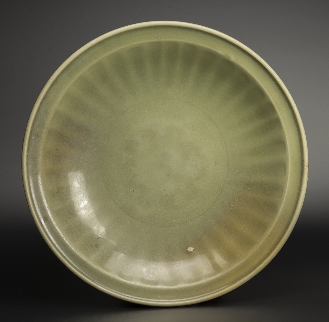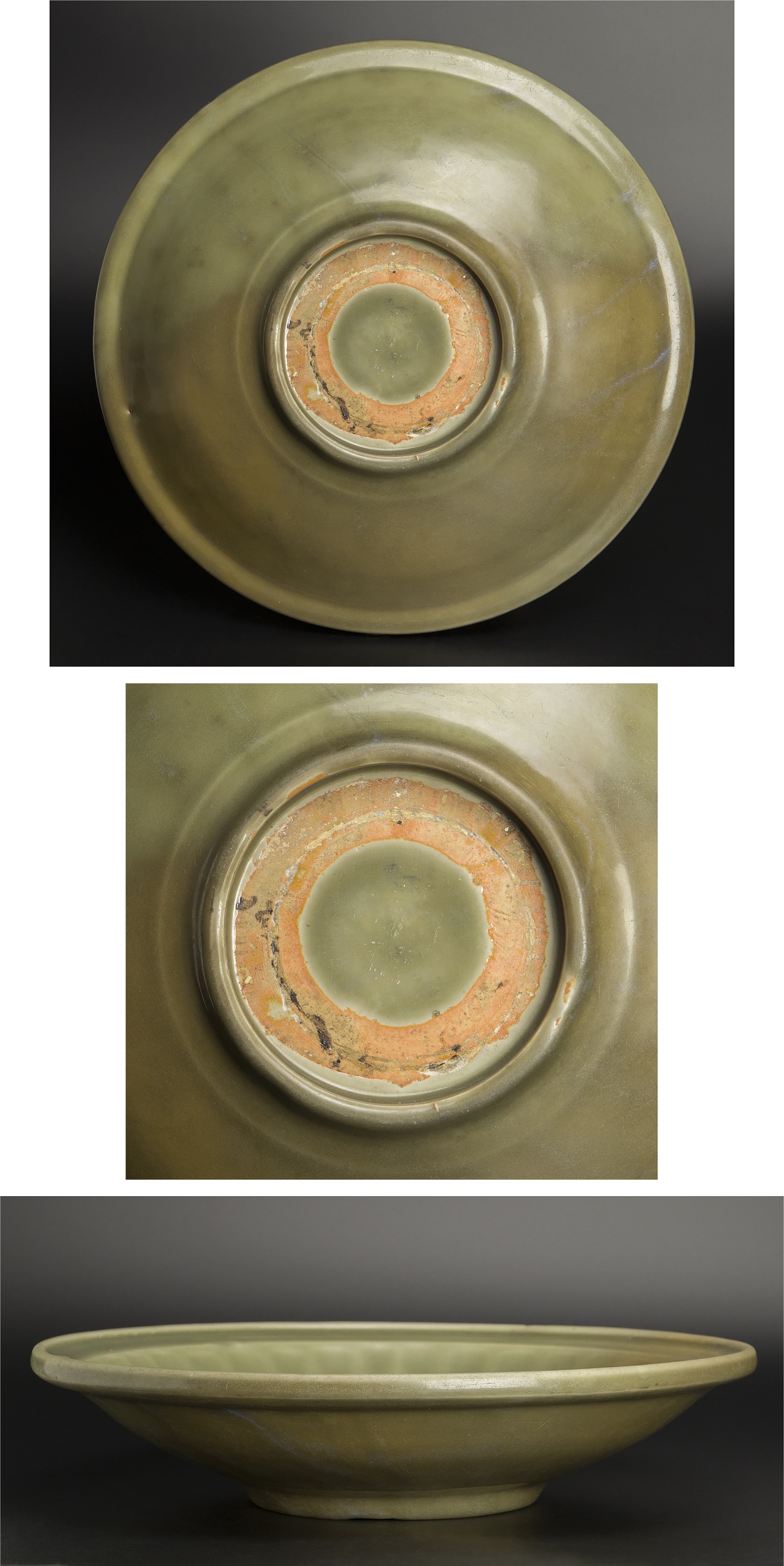 明 龍泉窯 青釉暗刻花卉紋大盤 共箱 中国 古美術