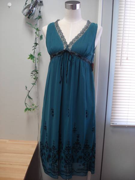 大きく開いた胸元に、ハイウエストのお洒落なワンピースになります。