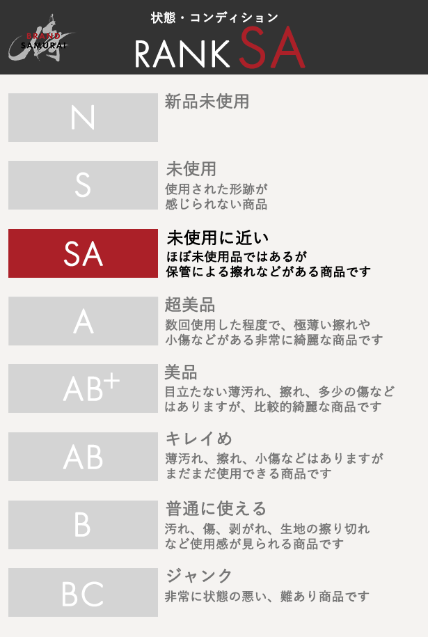 | 状態ランク | SA 未使用に近い ほぼ未使用品ではあるが、保管による擦れなどがある商品です ショルダーストラップはありません。 |