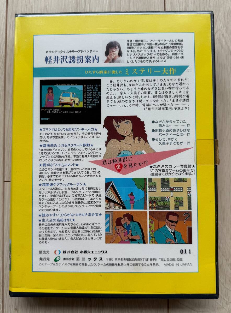エニックス社からリリースされていたアドベンチャーゲーム「軽井沢誘拐案内」カセットテープ版です。
