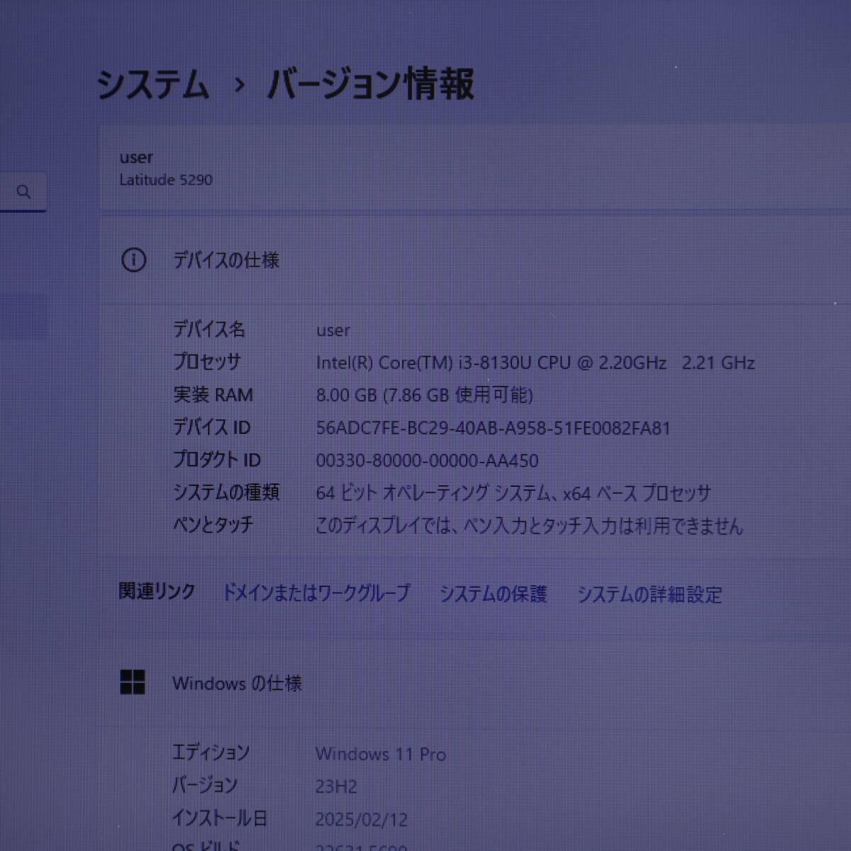 ★超美品 高性能8世代i3!新品SSD256GB メモリ8GB★LATITUDE5290 Core i3-8130U Webカメラ TypeC Win11 MS Office2019 H&B★P91541