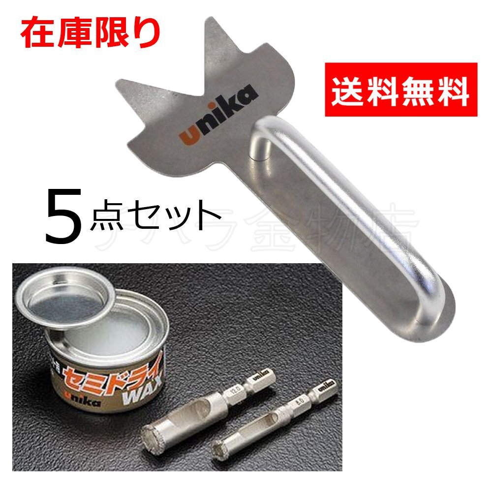 新品!送料無料!在庫限り ユニカ 充電ダイヤコアビット 5点セット セミドライ WAX付  5/6/8/10mm/位置決めガイドV