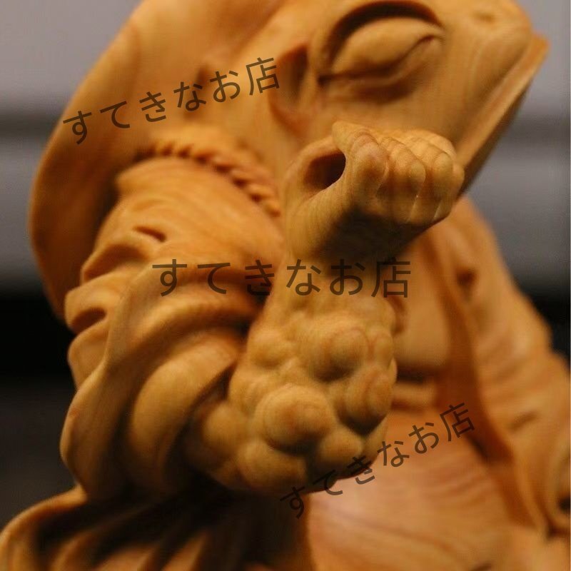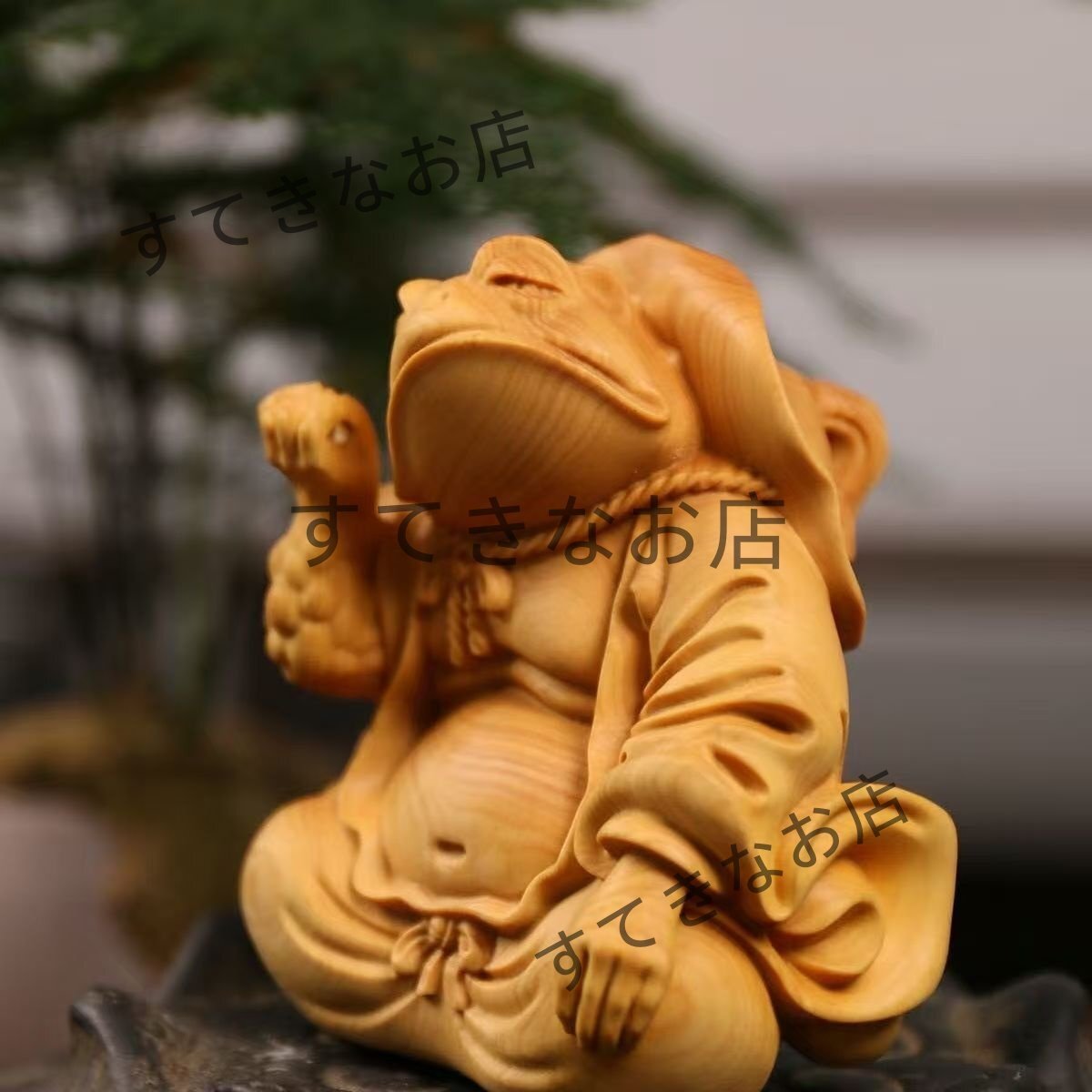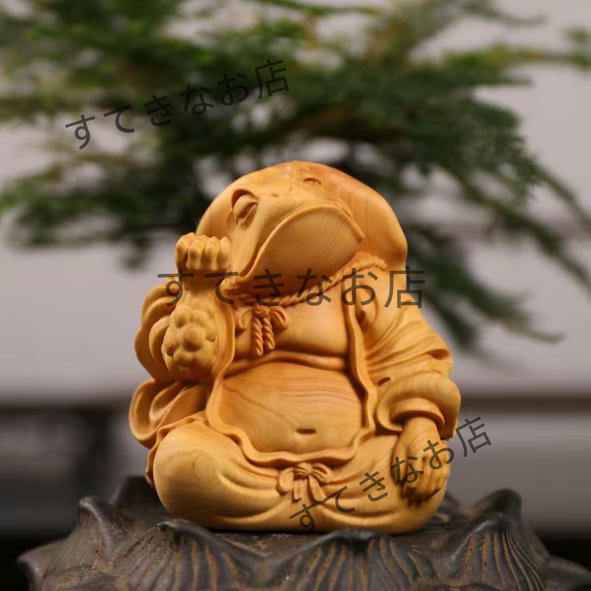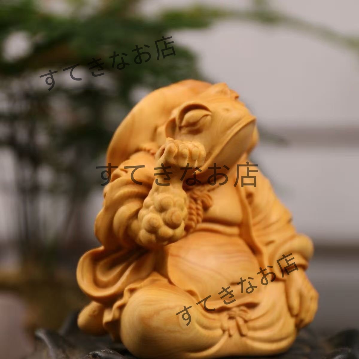 木彫 幸福を祈るカエル 彫刻 飾り置物 精密細工 美術工芸品