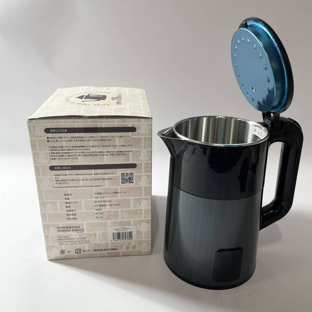 ◇商品説明◇ 中古品となります。細かな検品は行っていないため、見落としがあるかもしれません。使用状況、保管期間、保管状況についての詳細は不明となります。 吉田産業の大容量のステンレス製電気ケトルです。 コーヒーカップ約6.5杯分です。 サイズ:H24×W15cm 適正容量:1.6L 容量: 1.6L 満水容量:1.8L 消費電力: 900W 電源: AC電源式(100-110V) 色: green(グリーン) ※お色はグリーンというよりは、ターコイズブルーという感じです。 中古品となります。通電確認を行い、水を入れて、お湯が沸くことを確認いたしましたので動作に問題はないかと思われます。化粧箱および説明書付きです。 写真を確認していただき、ご納得いただいた上でご落札をいただけますようお願いいたします。 ご使用のモニターやブラウザ等の環境により、実物のお品と異なって見える場合がございます。 ※写真に写っているものが全てになります。 ※過去の保管状況は不明になります。 ※商品によってサイズ感が異なる場合があります。 ※まとめ売り商品は1点ずつの細かな検品、採寸は行っていません。