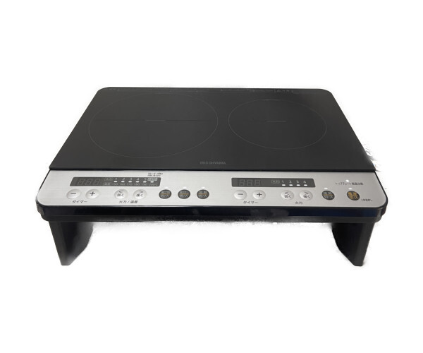 完動品 美品 アイリスオーヤマ 2口 IHクッキングヒーター 工事不要 1400W 100V 脚付き ブラック IHK-W12SP-B 貴重 レア ヴィンテージ