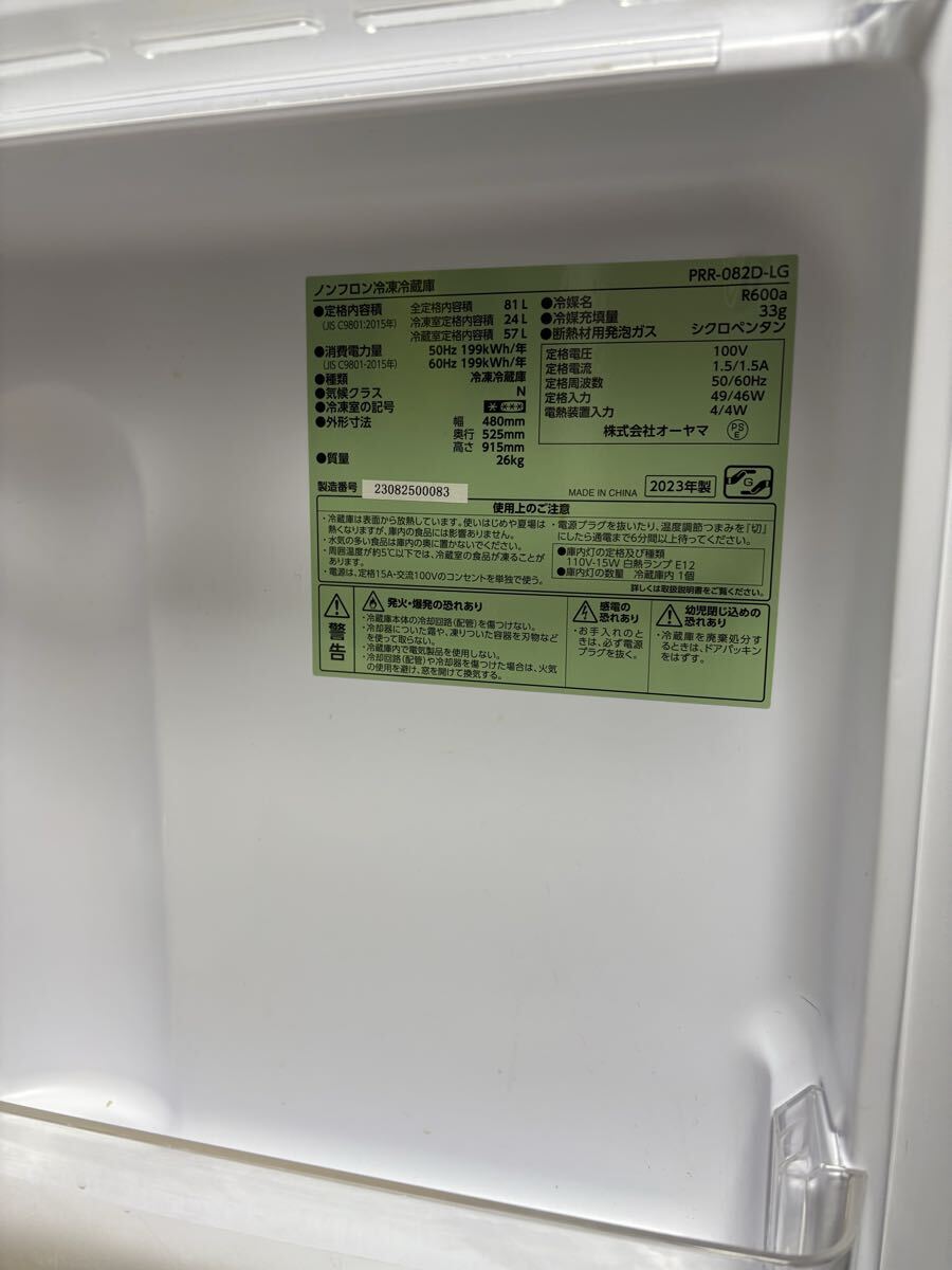 アイリスオーヤマの81リットル冷凍冷蔵庫です。