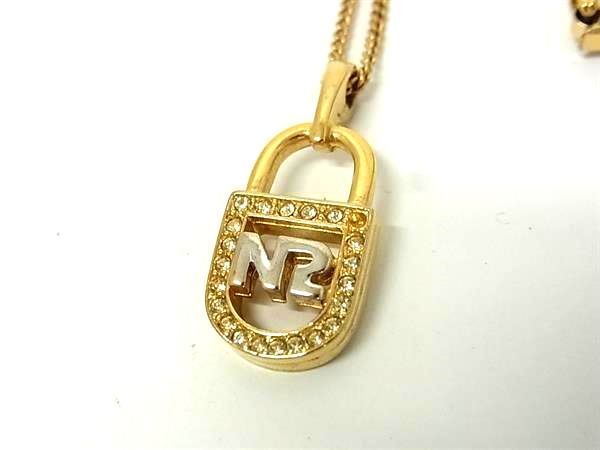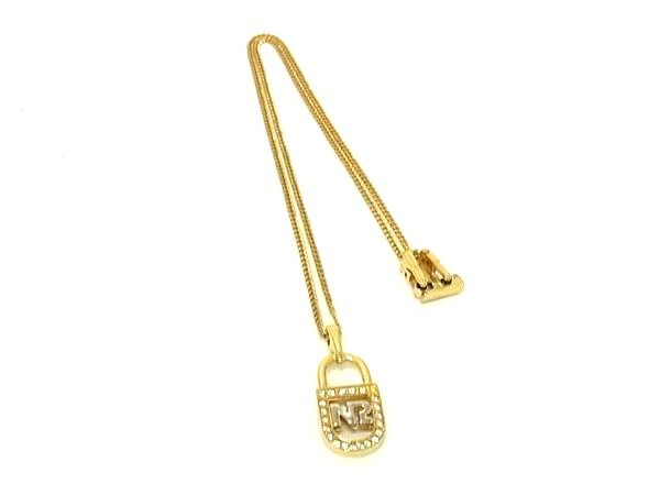 ■美品■ NINA RICCI ニナリッチ ラインストーン ネックレス ペンダント アクセサリー レディース ゴールド系×シルバー系 DJ6174