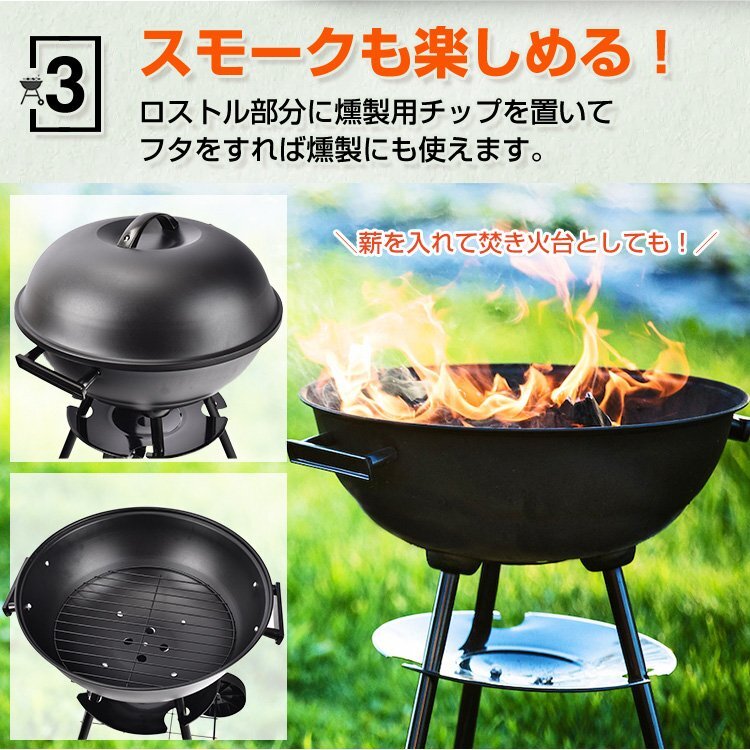 1円 バーベキューコンロ ステーキ バーベキューグリル コンロ 蓋付き 丸型 燻製器 スモーク 薪 BBQ キャンプ 焚き火 炭焼き od318