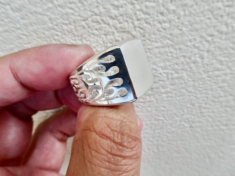 ごらん頂きありがとうございます。 オリジナルブランド 仁尾彫金『ファイヤーパターン、プラチナ印台リング』を出品致します。 オリジナルのアクセサリーを自ら制作しています。今回、ファイヤーパターンモチーフをシンプルな印台リングの両サイドに造形致しました。印台面は艶消し処理をしています。リングの最大幅は1.9cm弱で、全てプラチナの塊でプラチナ900を約72gとズッシリと大胆に使用しています。デザイン、制作を私自身で行っている為、今回、新品をご用意致します!! *こちらの作品につきまして制作に3週間程度かかります。m(_ _)m *こちらの作品につきまして14号から30号まで制作可能でございます。m(_ _)m プラチナ900 約72g (pt900刻印あり) ご質問等ございましたらお気軽にaerothmith@mac.comへご連絡下さい。m(_ _)m インスタにて仁尾彫金で制作状況を掲載していますのでお気軽にご登録をお願い致します。(^-^) 金プラチナにつきましてはフルオーダー制作も承っていますので、ご質問等ございましたらお気軽にaerothmith@mac.comへご連絡下さい。m(_ _)m その他も出品していますのでご覧下さい。m(_ _)m |