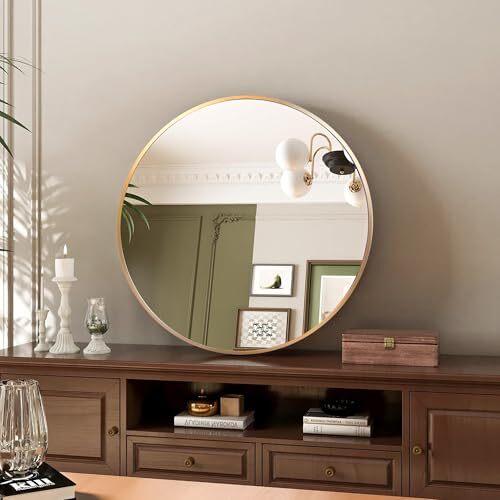 鏡 壁掛けミラー アルミフレーム 壁掛け鏡 バスルームミラー 丸型 化粧鏡 リビング ウォールミラー 玄関 洗面 トイレ 円形(ゴールド, 直径30cm)