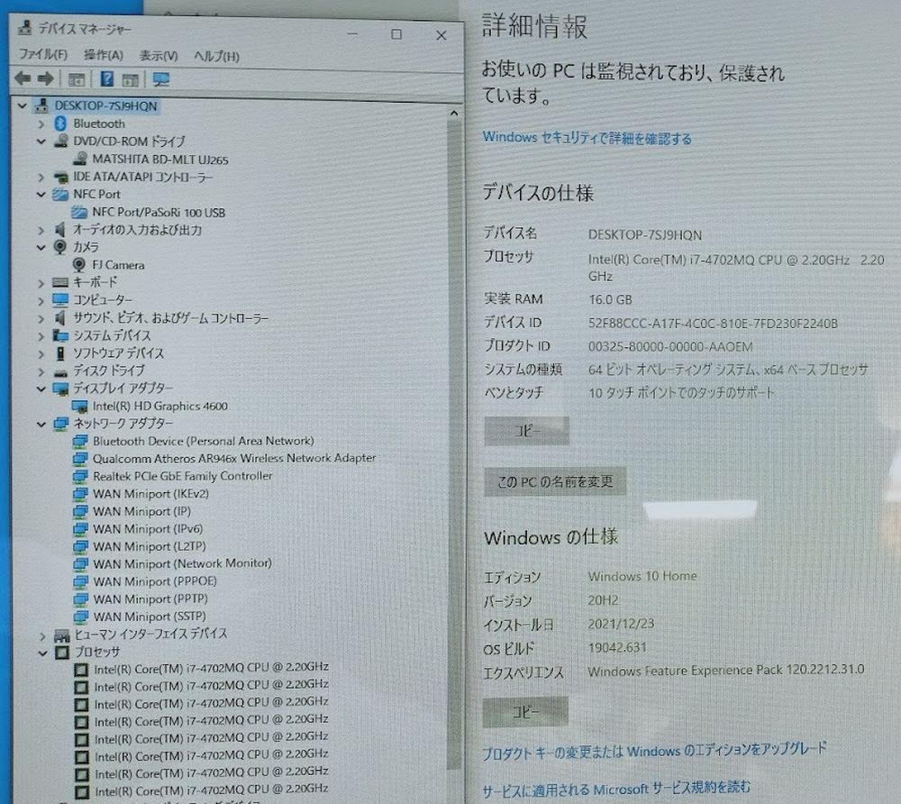 Core i7-4702MQ 2.2GHz 4コア8スレッド 6MB高速キャッシュ ターボブースト対応 最大3.20GHz HTテクノロジー対応 |