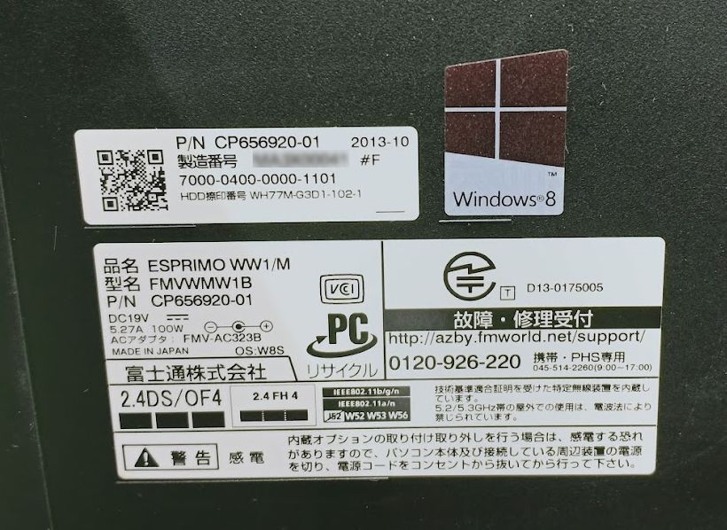 | 参考 | https://www.fmworld.net/fmv/wh/1310/spec/ |