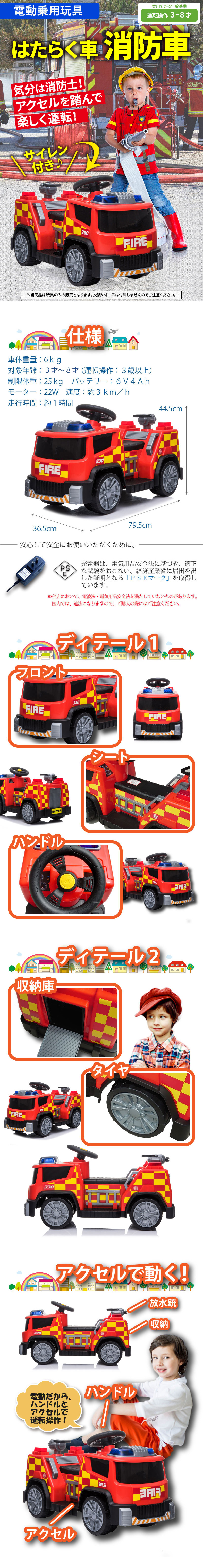 電動乗用玩具 消防車 レッド 【本州・四国 送料無料!】 ペダルで操作 電動乗用カー 乗用玩具 はたらく 車 おもちゃ 男の子 女の子 3~8才