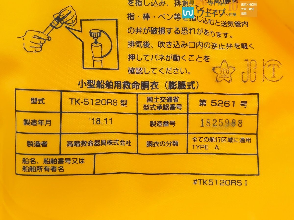 | 商品名 | ブルーストーム 腰巻式ライフジャケット TK-5120RS型 桜マーク有り |