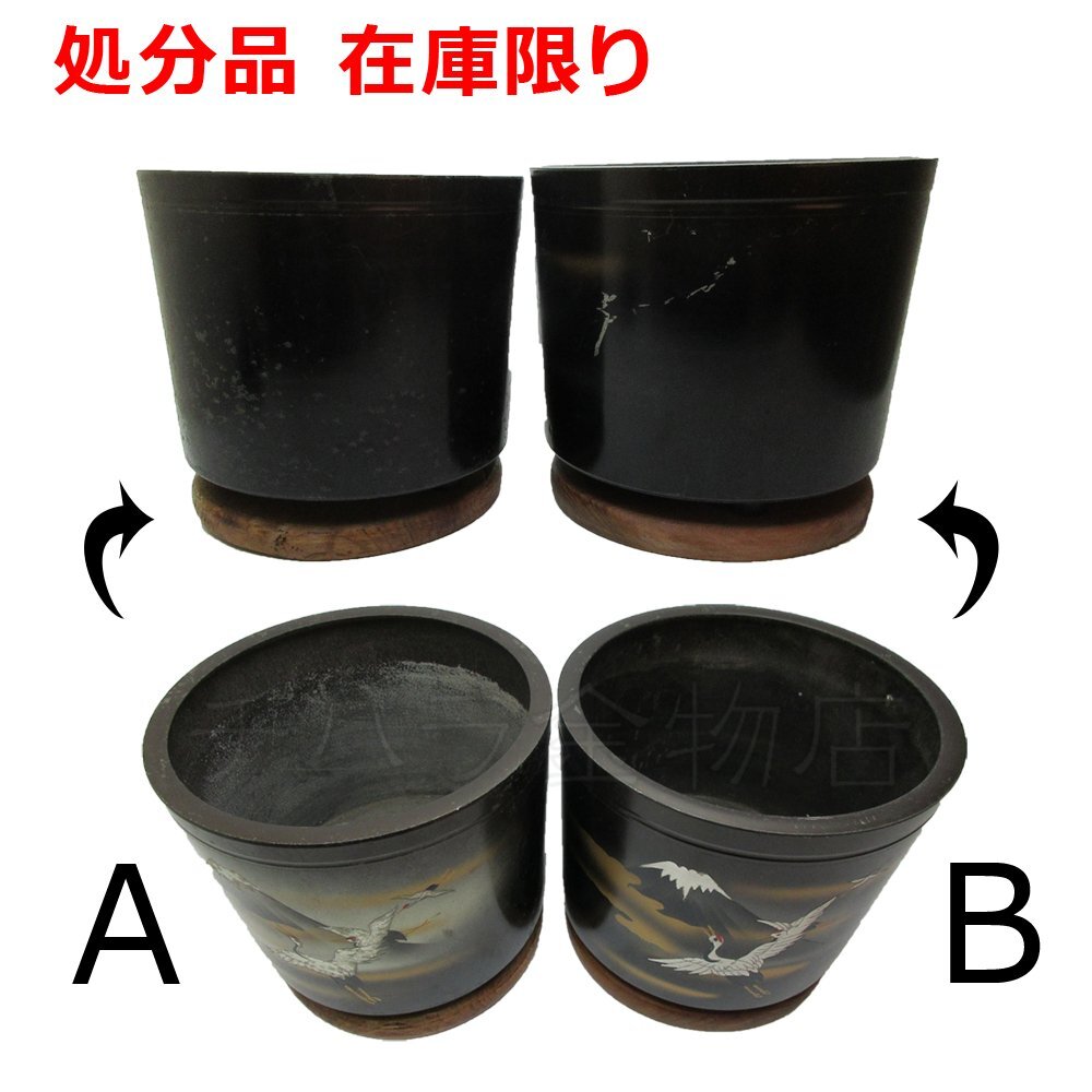 処分品!真鍮手あぶり火鉢 銅製 火鉢 直径約24cm 木製台座付 鶴、富士山図 1対 2個セット 火鉢 3本足 古民具 亀裂、傷みあり 未使用品