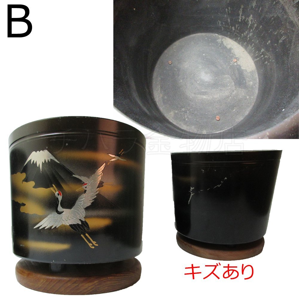 真鍮手あぶり火鉢 銅製 火鉢 直径約24cm 木製台座付 鶴、富士山図 1対 2個セット 火鉢 3本足 古民具 亀裂、傷みあり 未使用品
