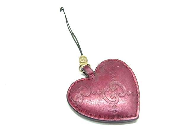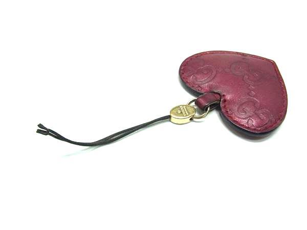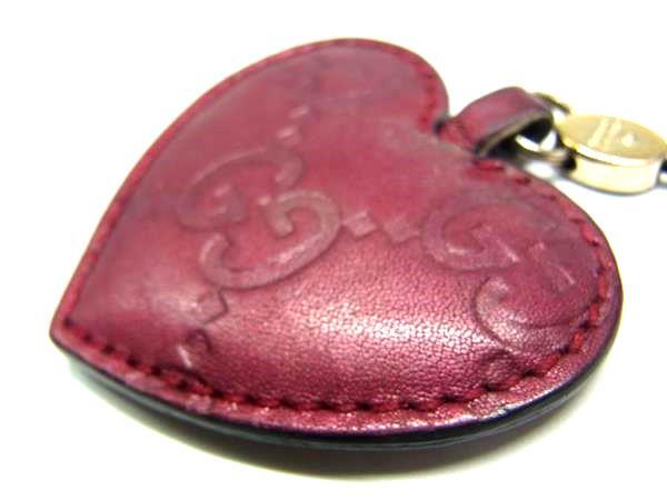 GUCCI グッチ グッチシマ GG柄 レザー ハート キーホルダー ストラップ レディース ボルドー系 DH0186