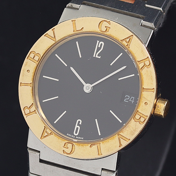 1円 稼働 良品 ブルガリ ブルガリブルガリ BB30SGD YG×SS ブラック文字盤 QZ レディース腕時計 0580800 10BLT 1円 KTU