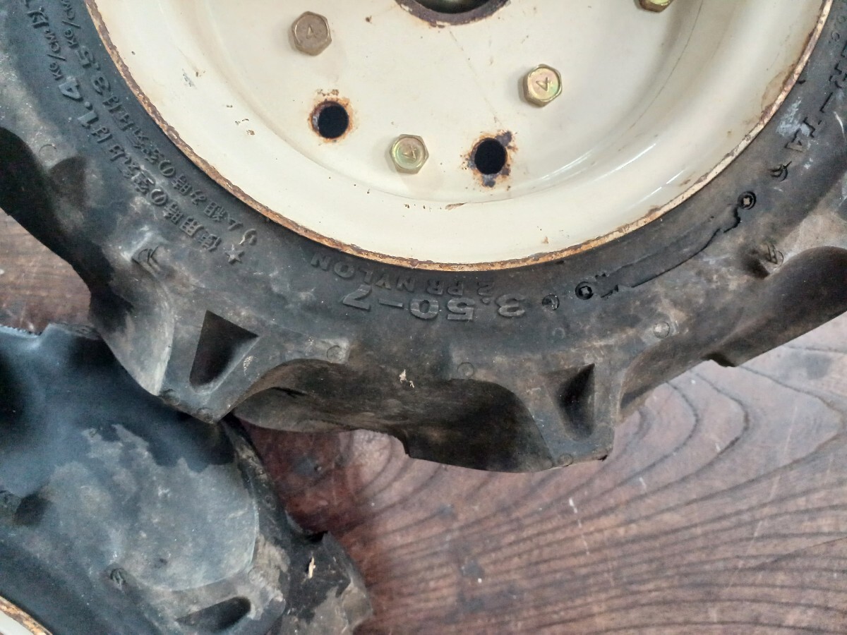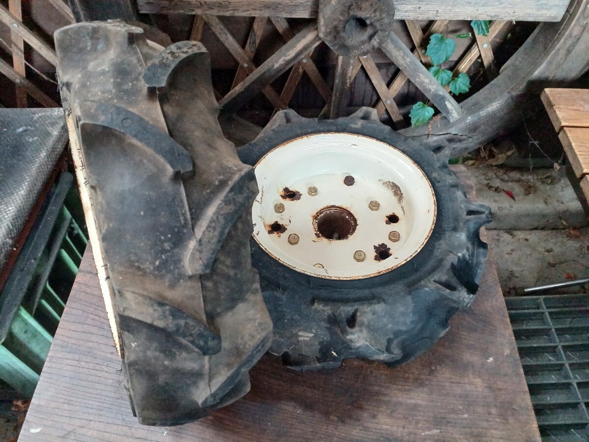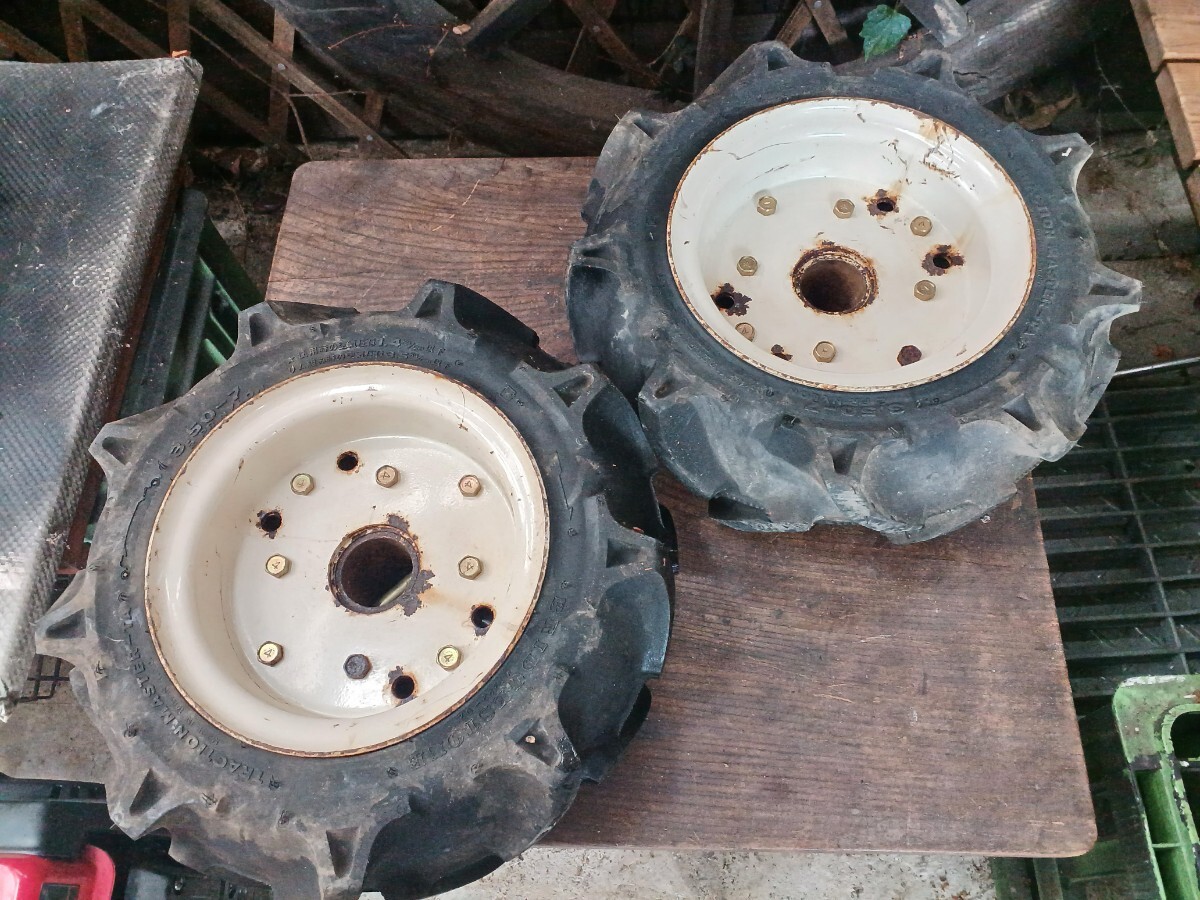 管理機用ホイール付タイヤ3.50-7丸軸の出品です。(左右セット)