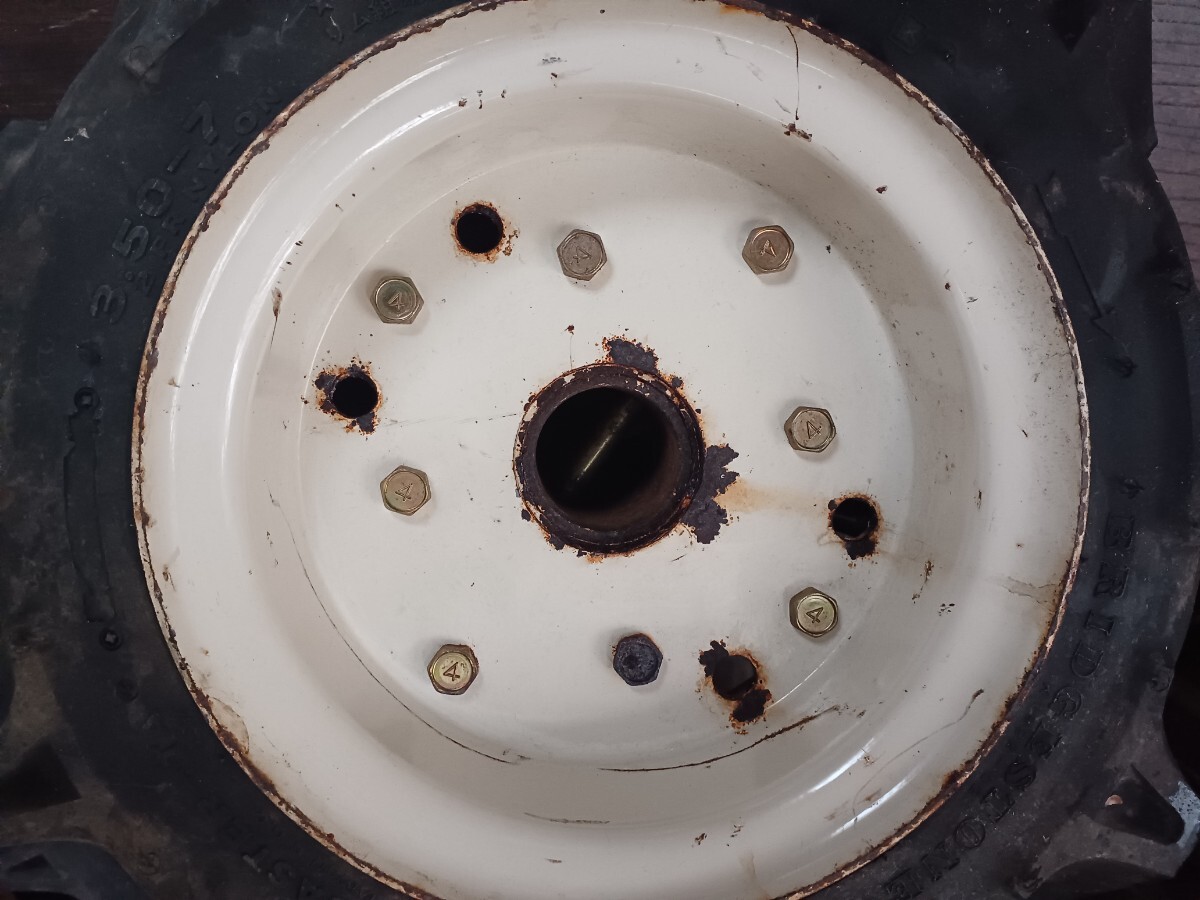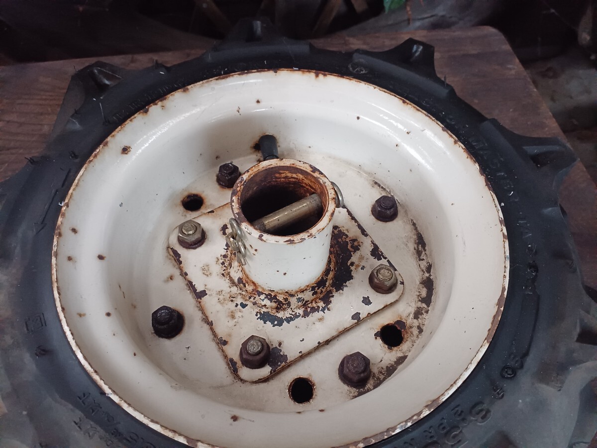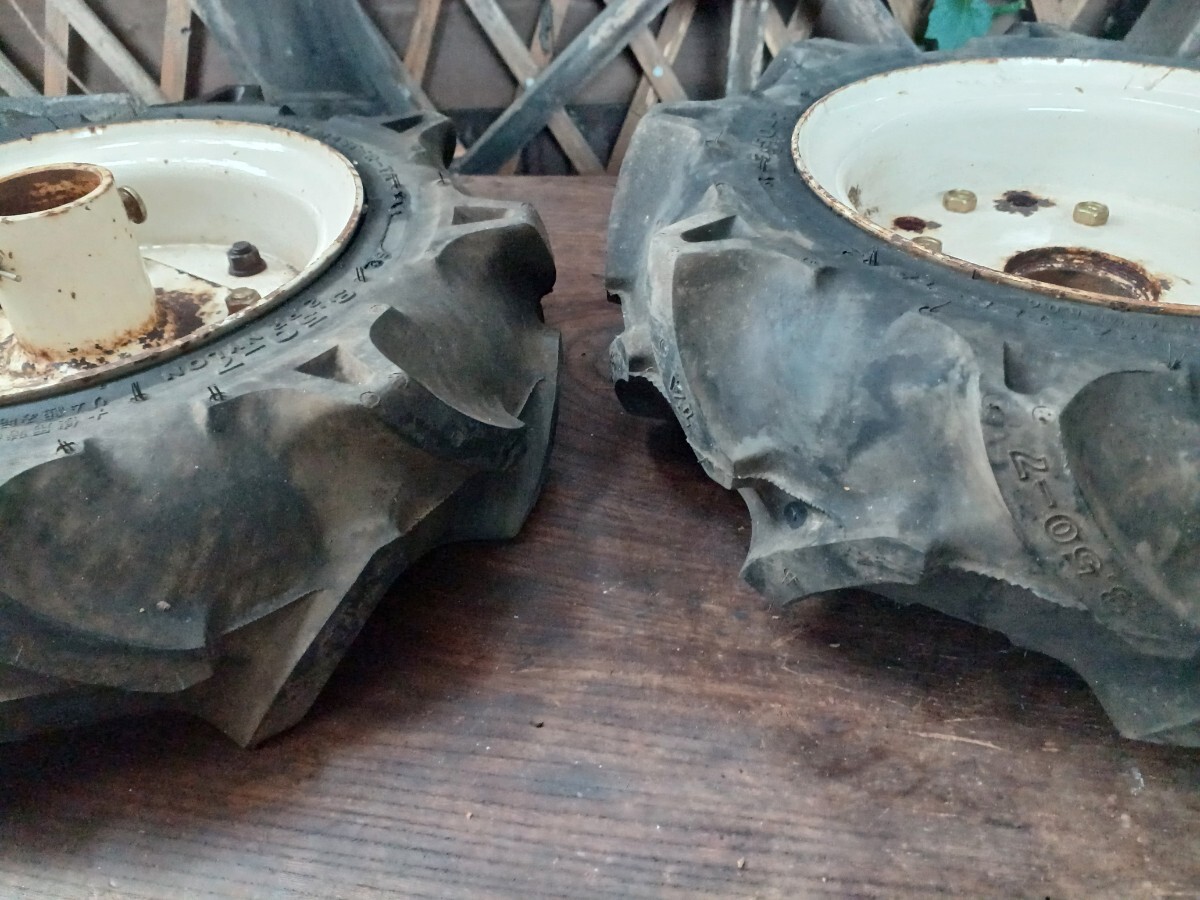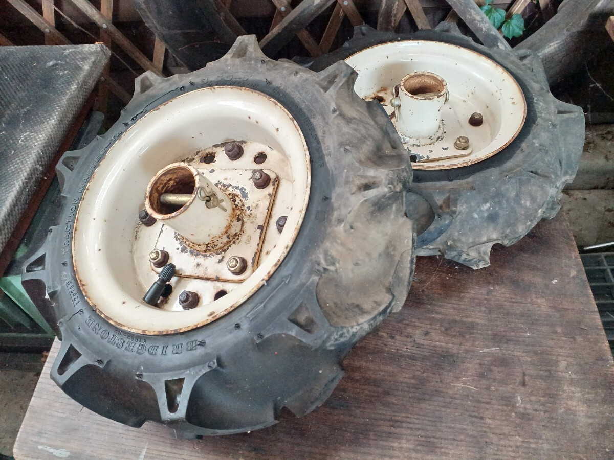 管理機用ホイール付タイヤ3.50-7丸軸の出品です。(左右セット)