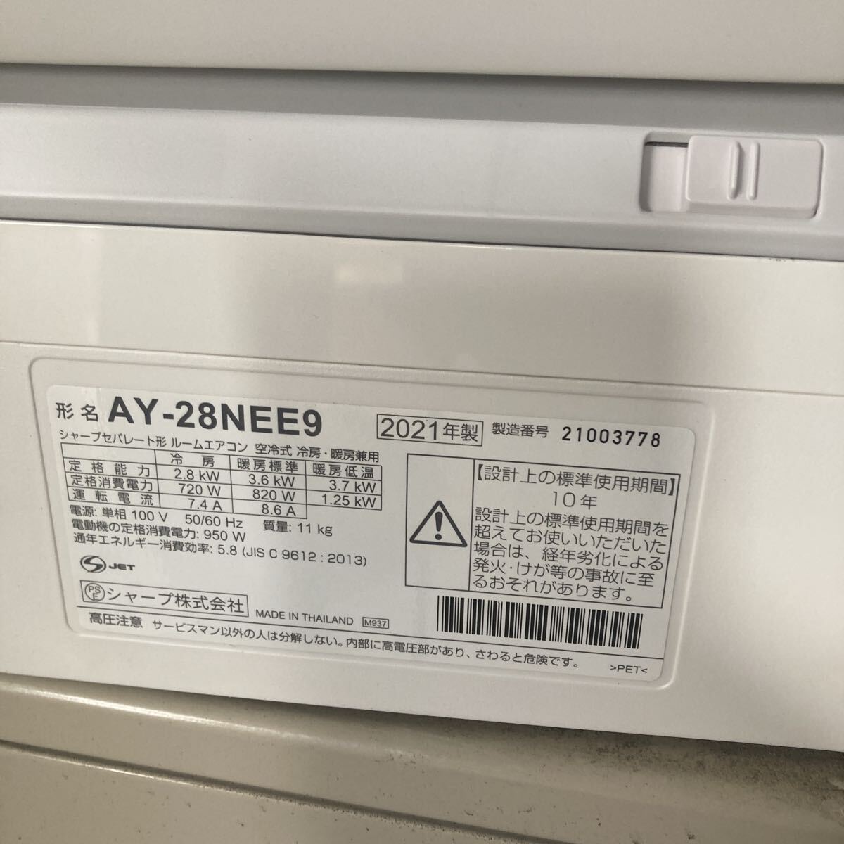 B10-99 SHARP シャープ ルームエアコン AY-28NEE9 2021年製 おもに10畳用? マジック跡あり