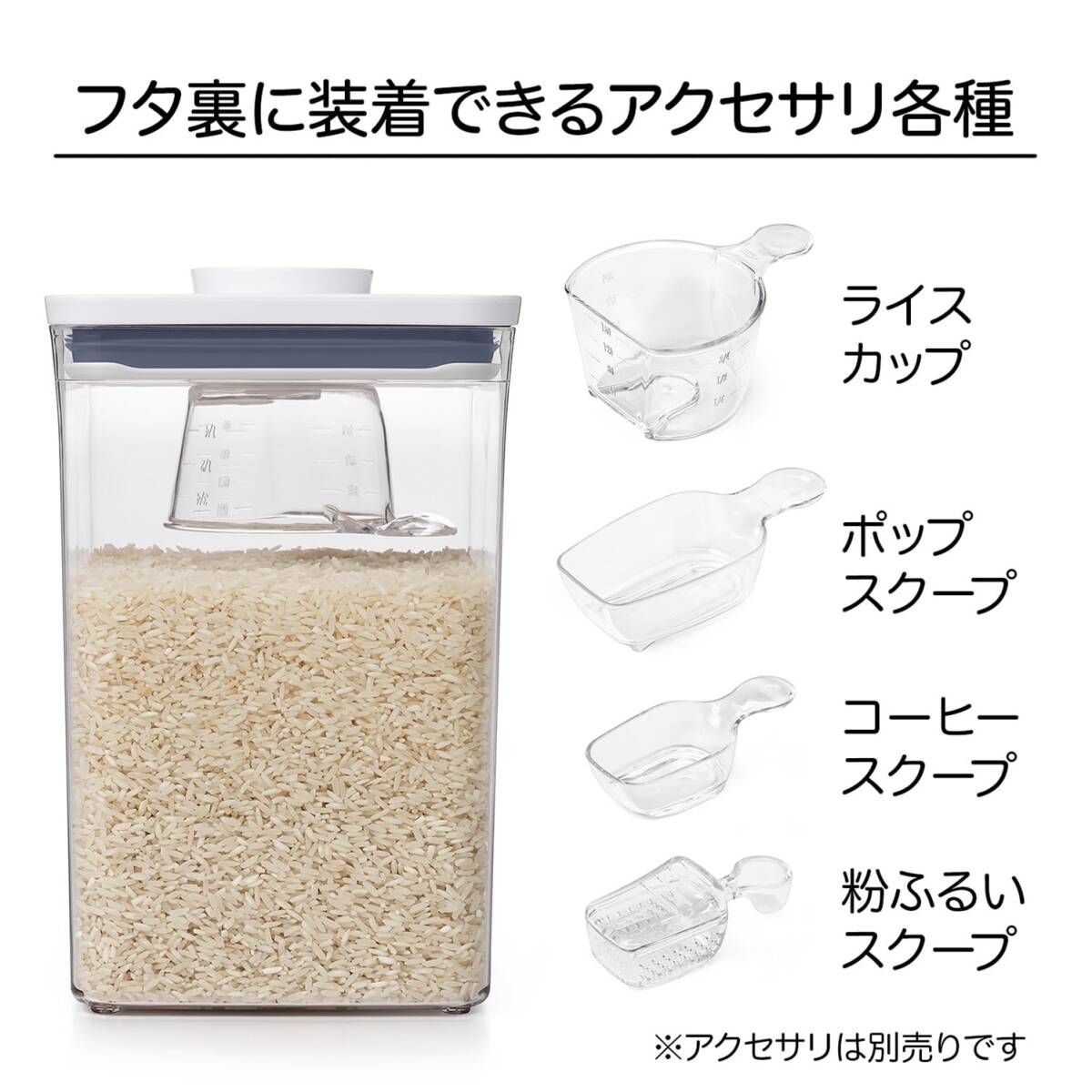 ポップコンテナが新バージョンとなって登場 今までのプッシュボタン機能とスタッキング機能はそのままに、デザインを改良し性能アップ スクープなどアクセサリーがフタの裏側に装着できるようになった 今までのポップコンテナと新型ポップコンテナを組み合わせてもスタッキングが可能 フタの分解が簡単になり、洗浄などお手入れが簡単になった OXOのポップコンテナは、より手軽にドライフードなどを保存するためにデザインされた、ボタンを押すだけで開閉する密閉容器 ボタンを押し下げるだけで、外からの湿気を防ぐことが可能 密閉力を持続させ、より長くお使いいただくためにも、ボタンを使わずに開閉したり、フタだけを持って移動させることは避ける