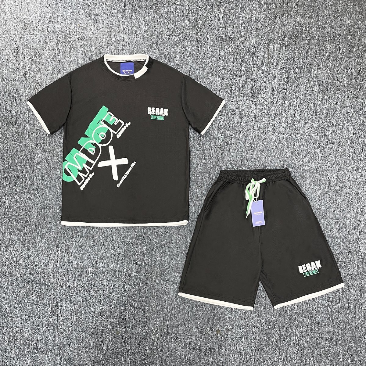 春夏・上下セット 定価7万◆Emmauela・イタリア・ミラノ発◆上品 薄手 快適 通気 半袖Tシャツ ショートパンツ スポーティ レジャー 日常 XL