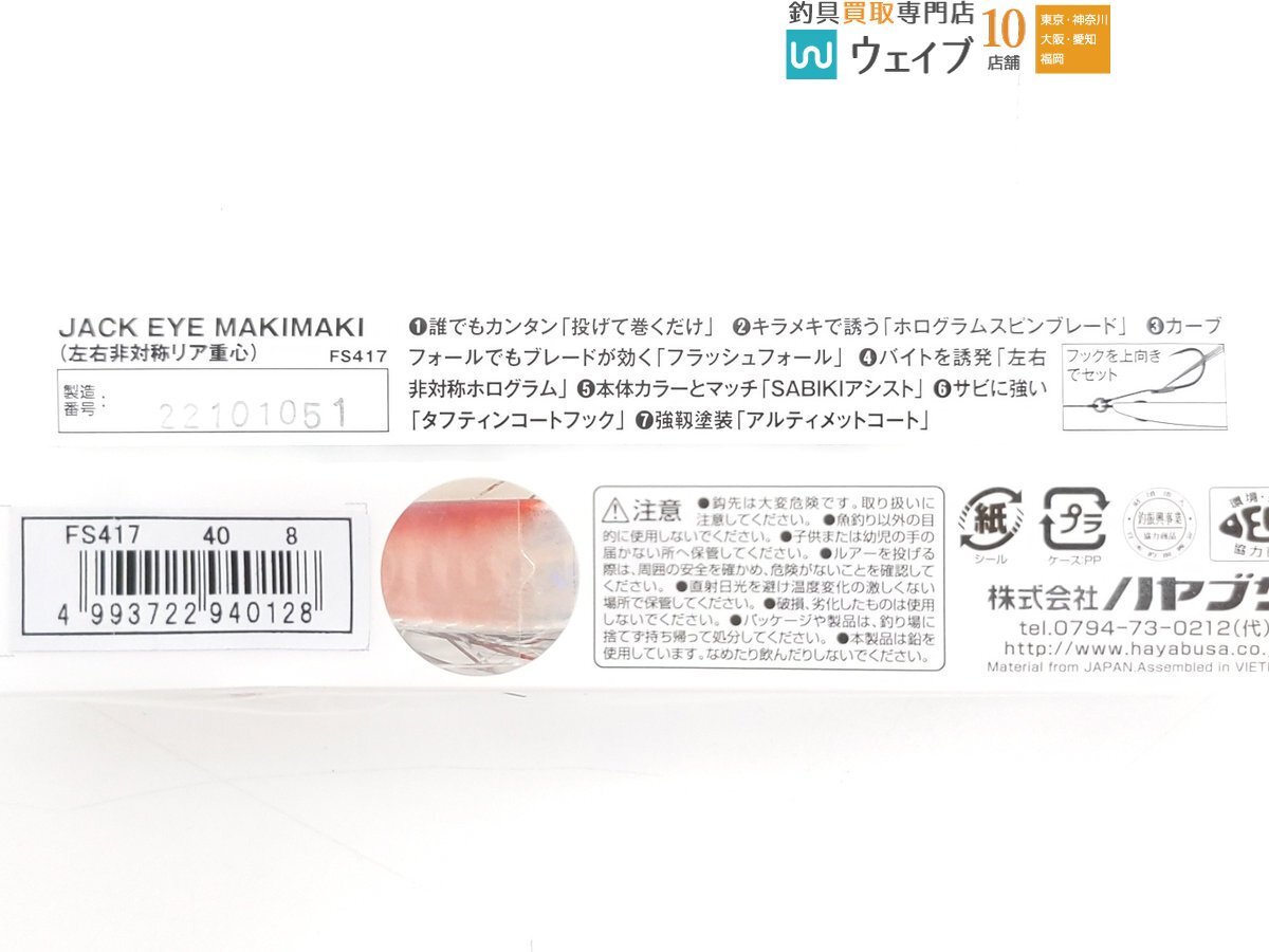 | 商品名 | ハヤブサ ジャックアイ マキマキ 20・40g 計15点 未使用品 |