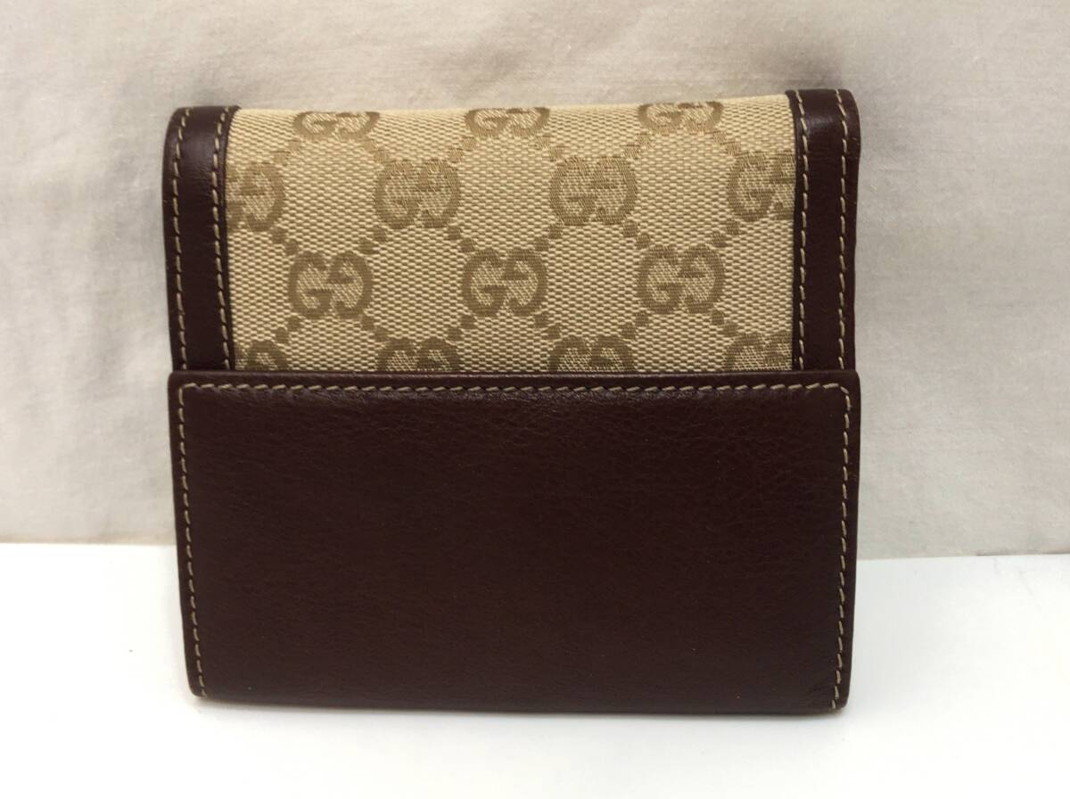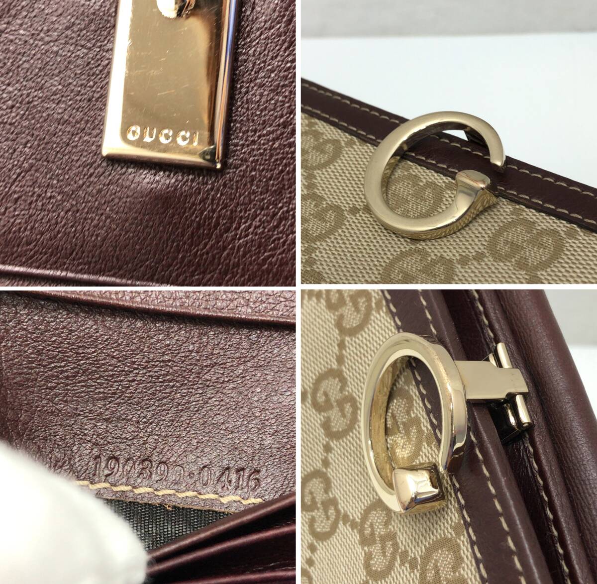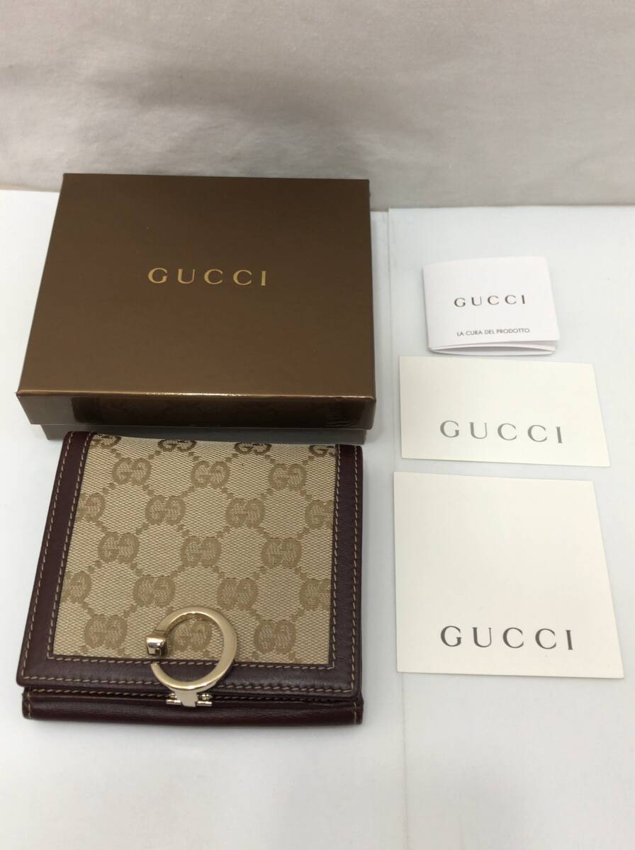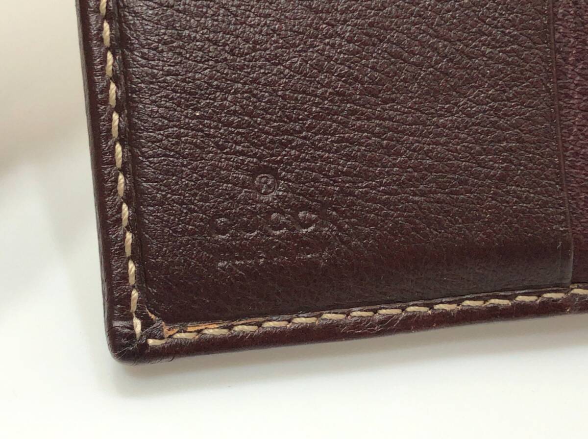 GUCCI グッチ 二つ折り財布 ベージュxボルドー系ブラウン 190390 0416 GGキャンバスxレザー SS-412899