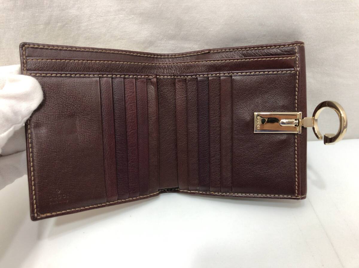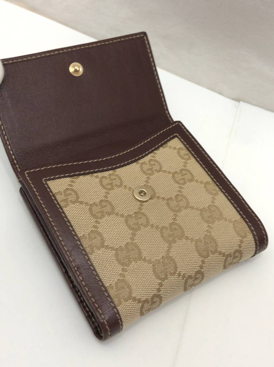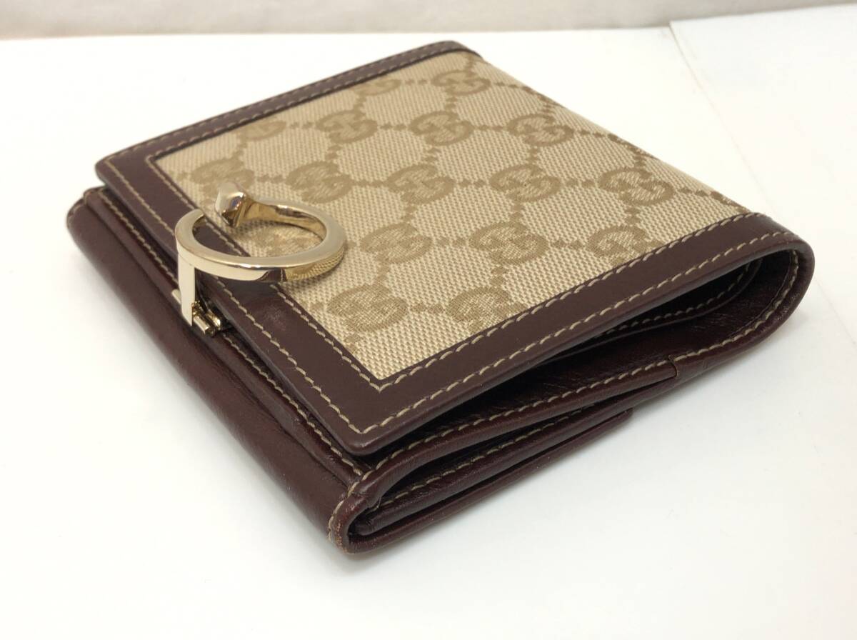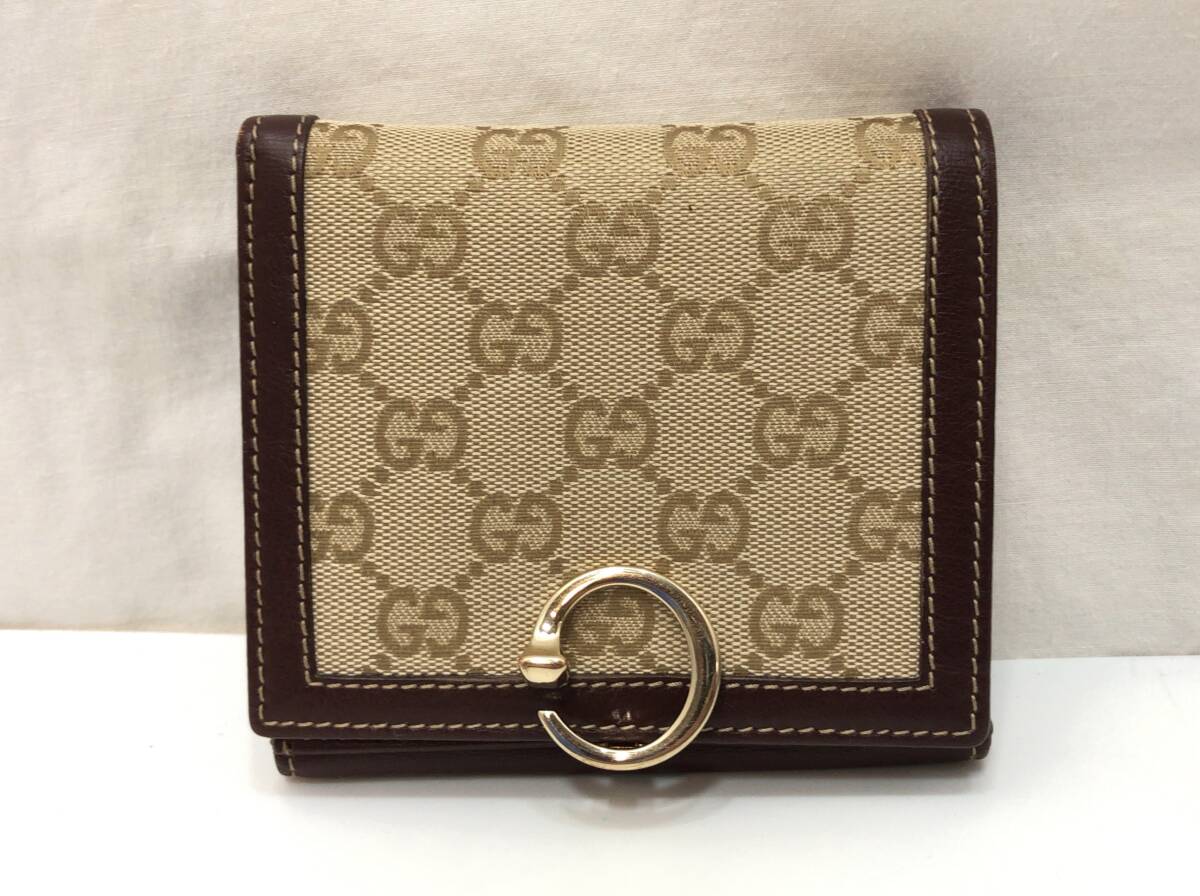 GUCCI グッチ 二つ折り財布 ベージュxボルドー系ブラウン 190390 0416 GGキャンバスxレザー SS-412899