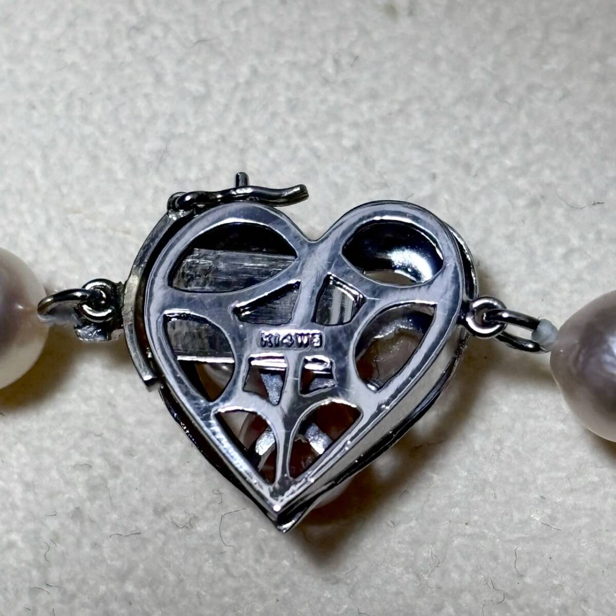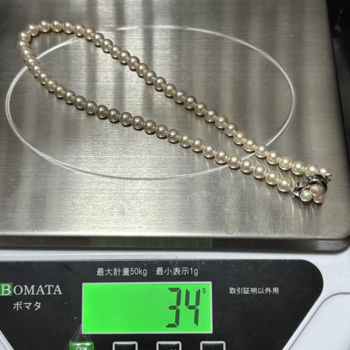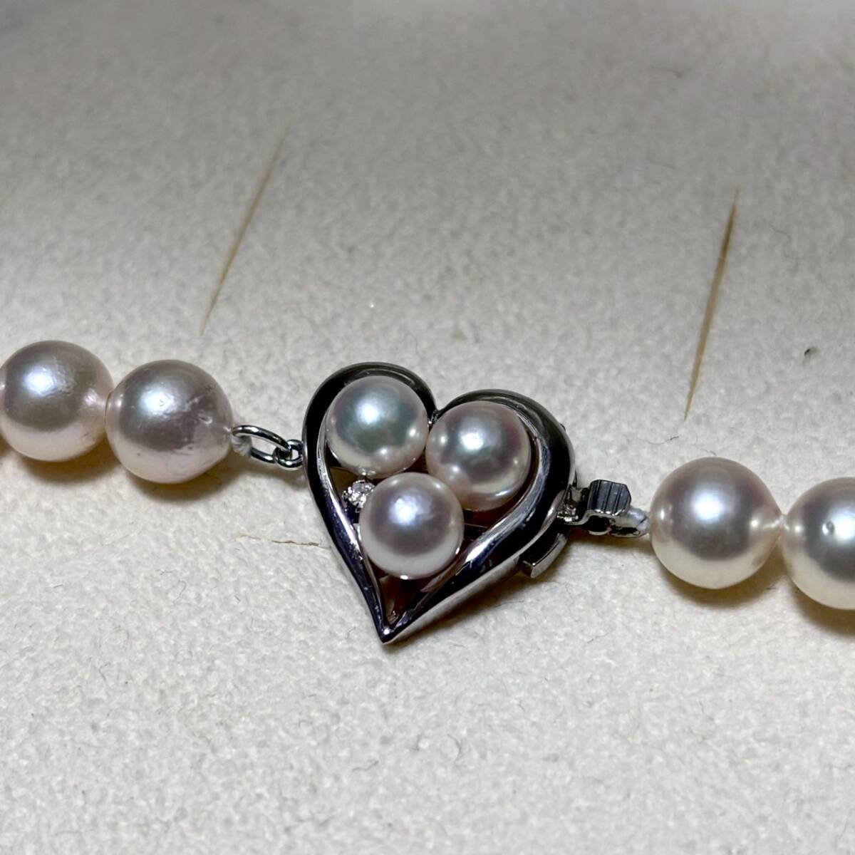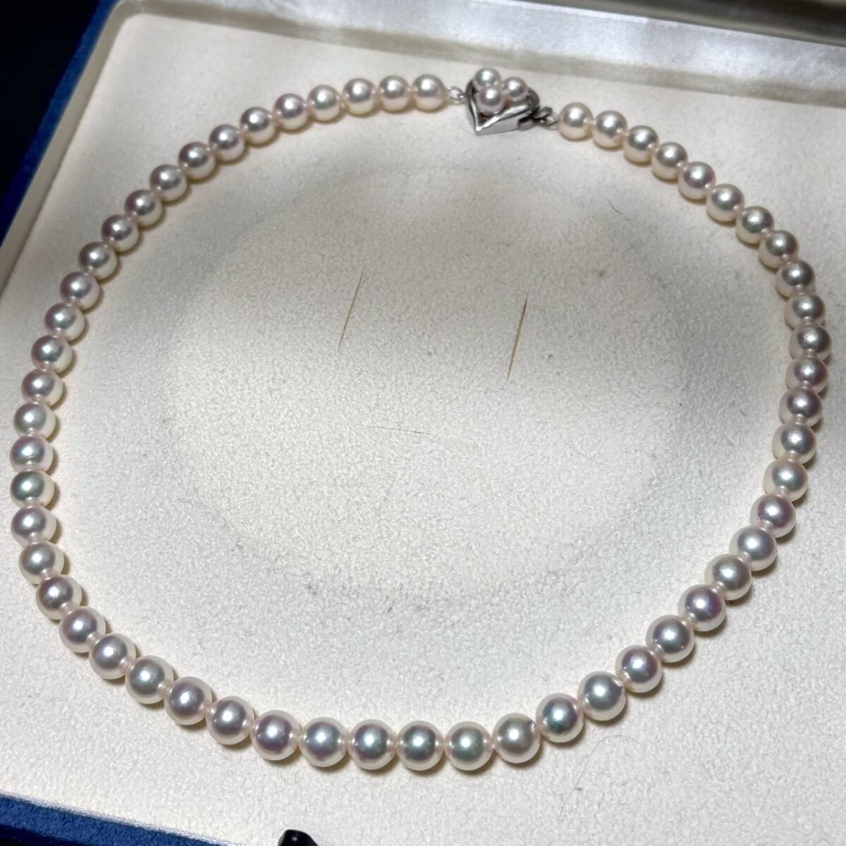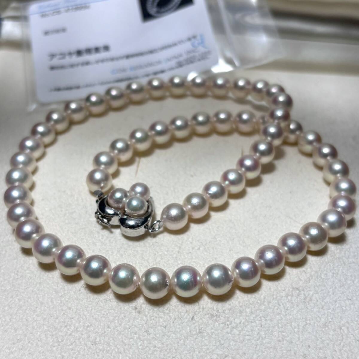 【テリ強/K14WG】あこや真珠 パール ネックレス 約7mm-7.5mm ハートクラスプ pearl jewelry necklace 34g 42.5cm アコヤ 本真珠 鑑別書付属