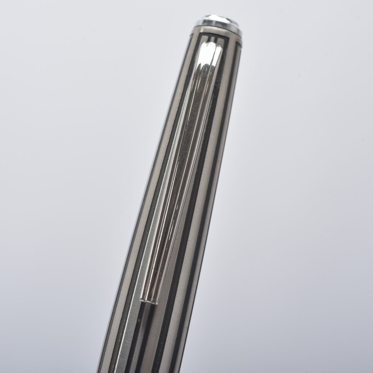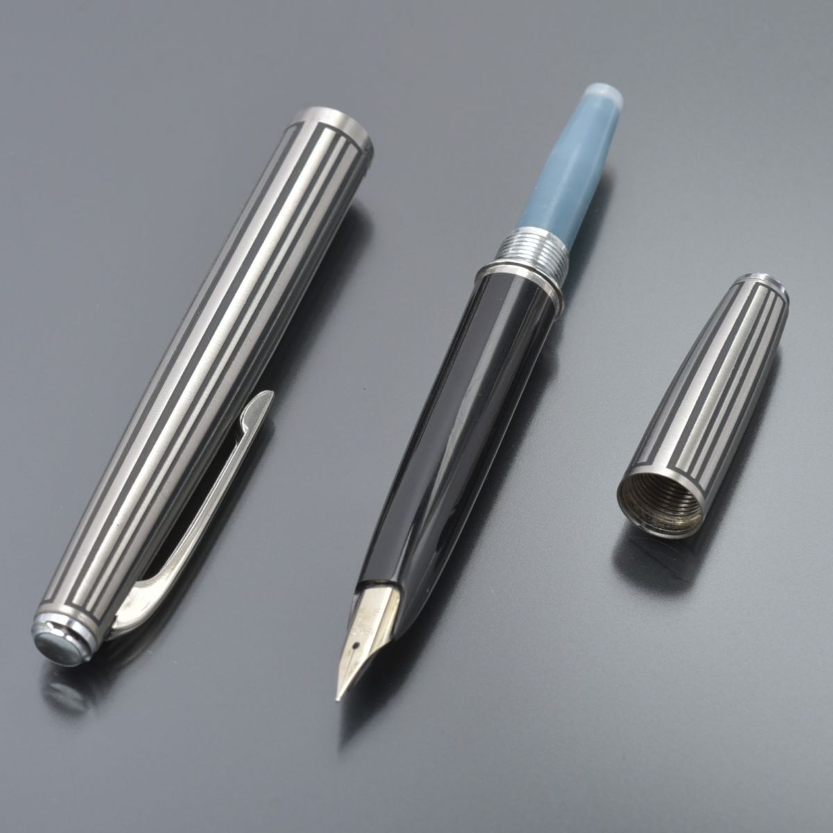 美品 プラチナ PLATINUM 万年筆 ペン先18K-WG 中字 ブラック シルバー ホワイトゴールド ストライプ キャップ式 文房具 ブランド #N※C823