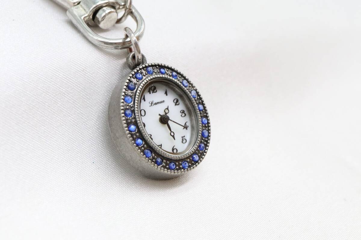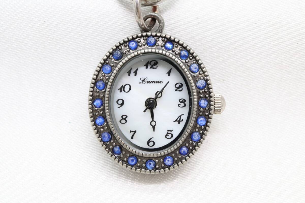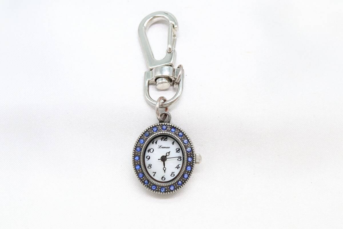 【W269-19】動作品 電池交換済 Lamue ラムー ラインストーン キーウォッチ 懐中時計 レディース【送料全国一律185円】