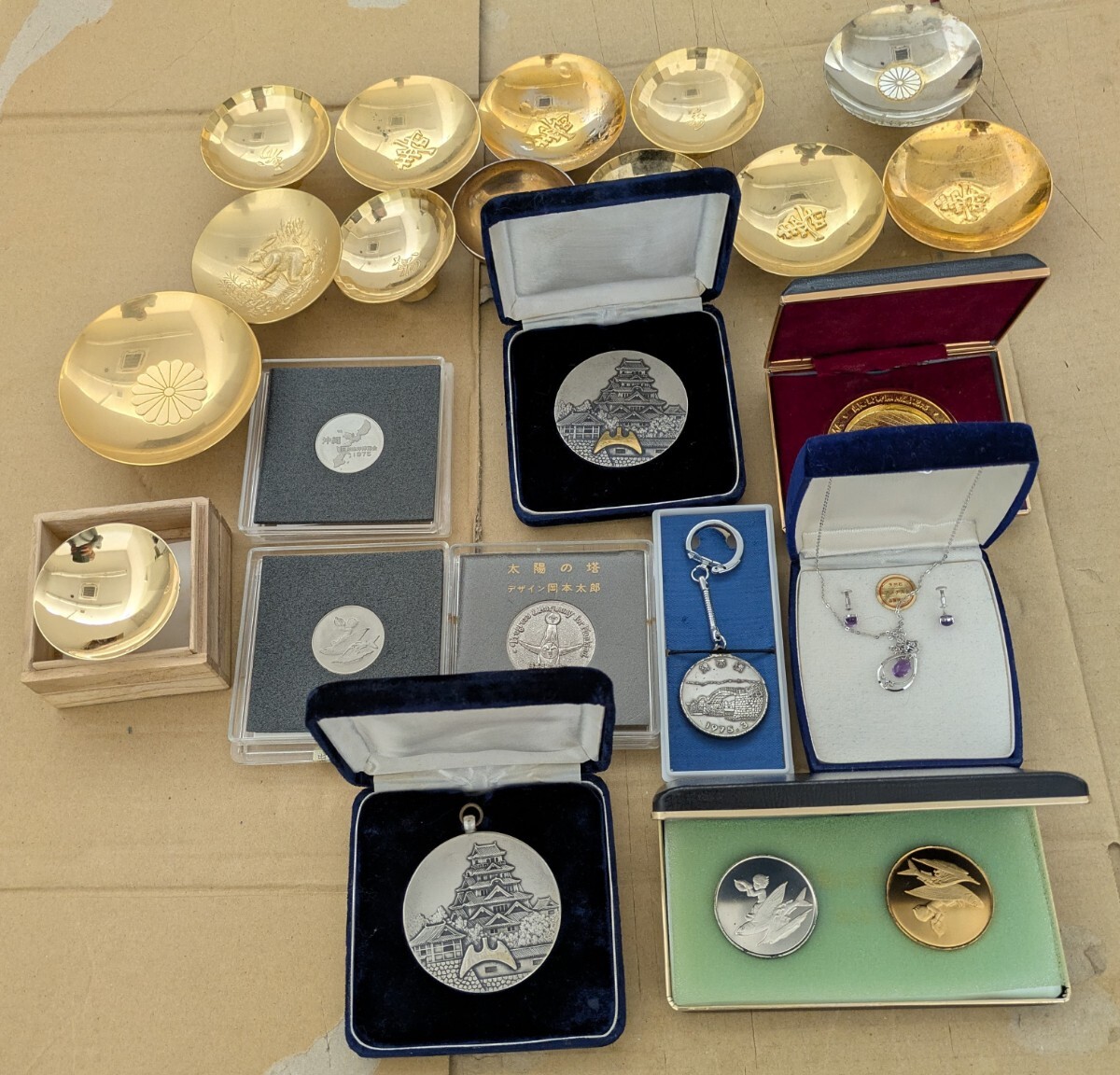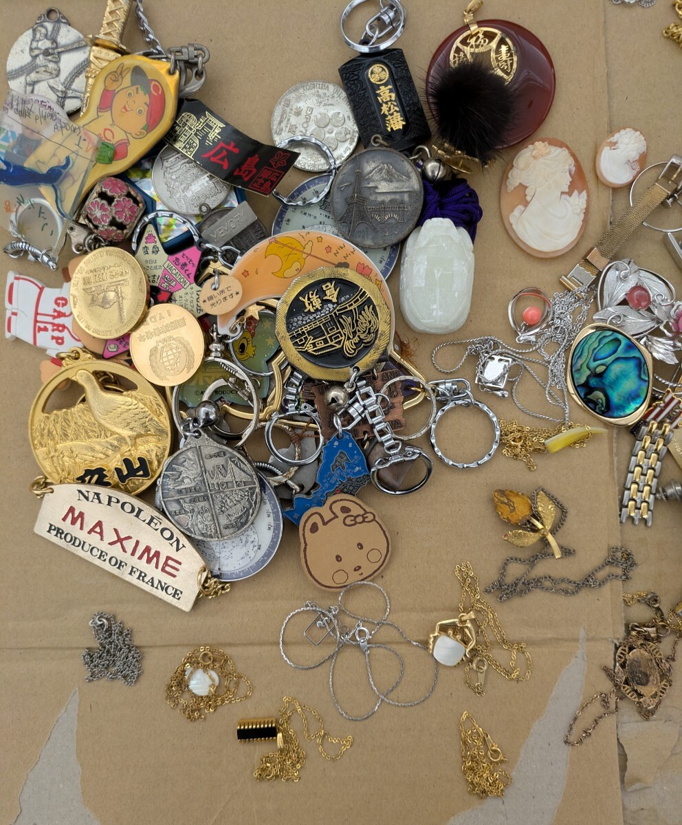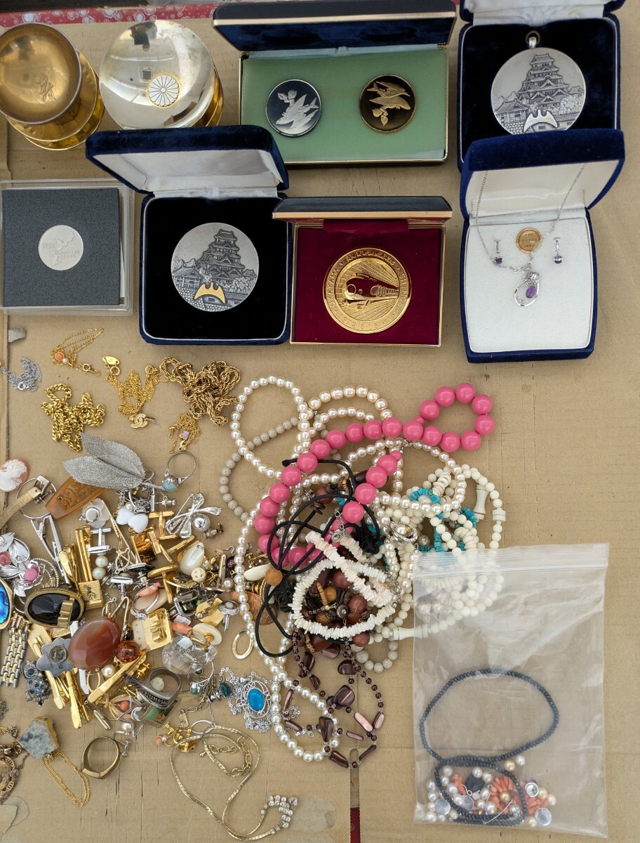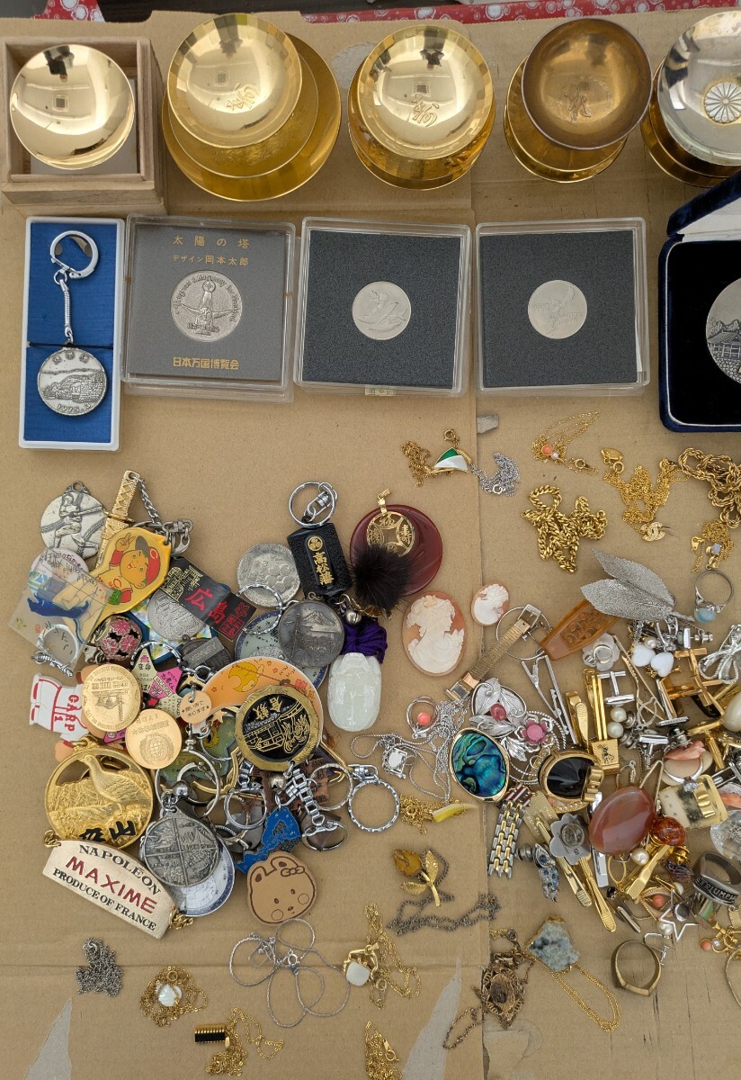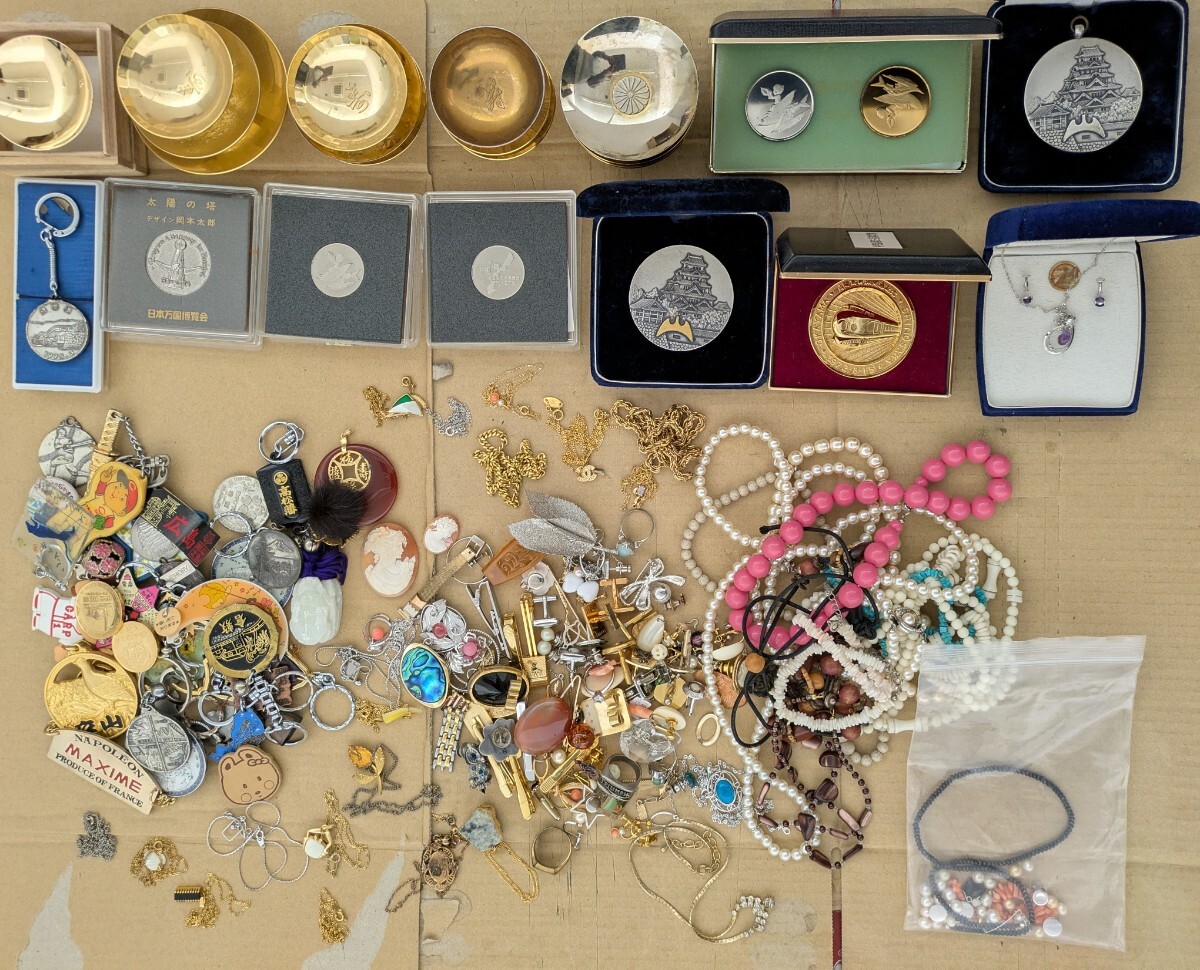 メッキまとめ ネックレス 金杯 ブローチ タイピン キーホルダー カメオ 記念メダル等 イミテーションアクセサリー ジャンク