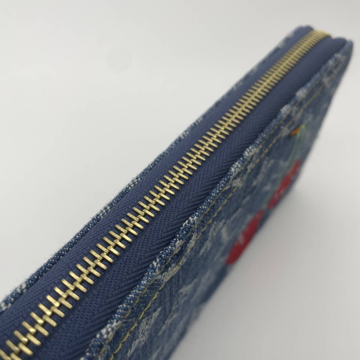 デニムのカジュアルさと、カウハイドレザーのトリミングが醸し出すメゾンの品格が見事に融合。財布を開くたびに心躍る、大ぶりのチェリーモチーフが日常にアートな彩りを与えます。