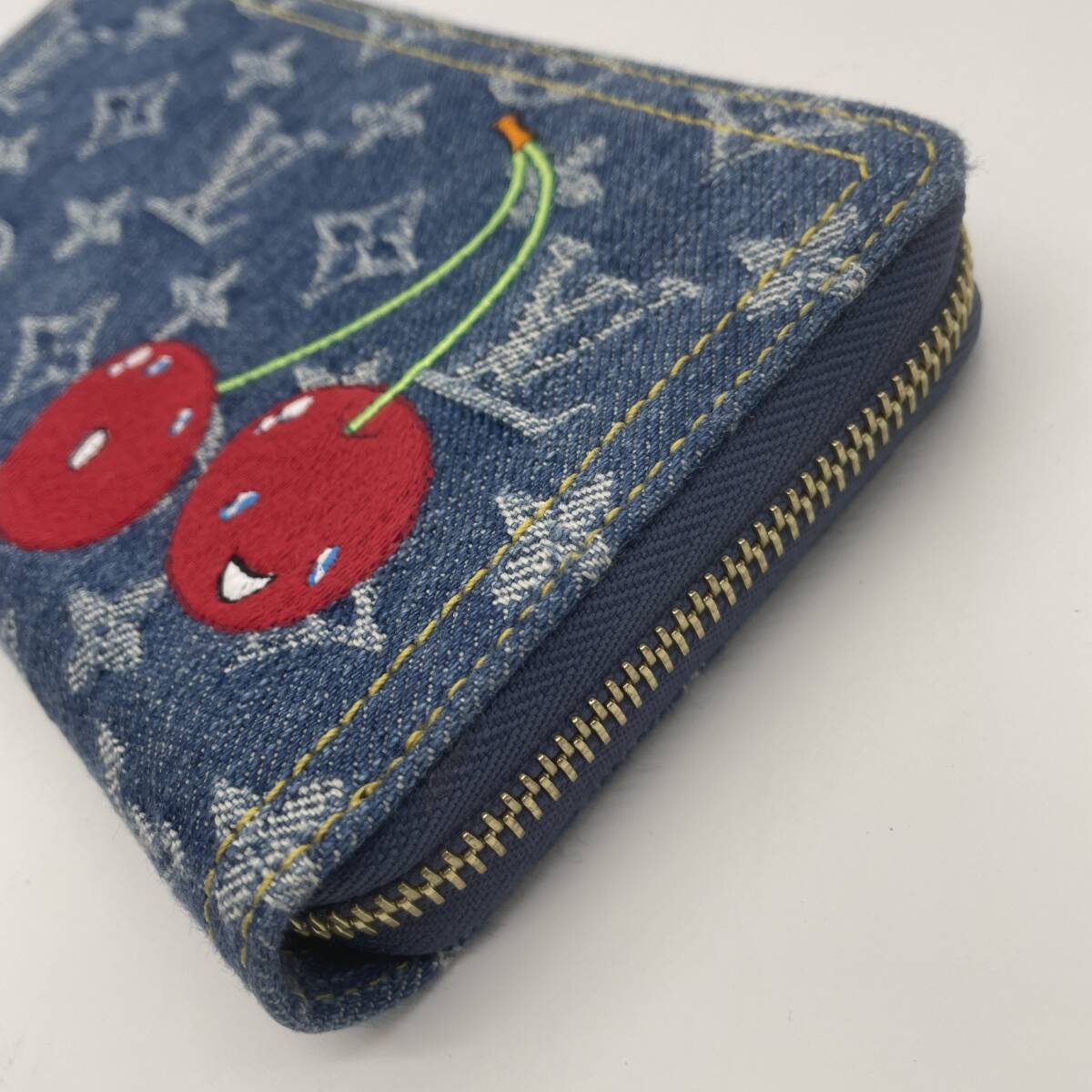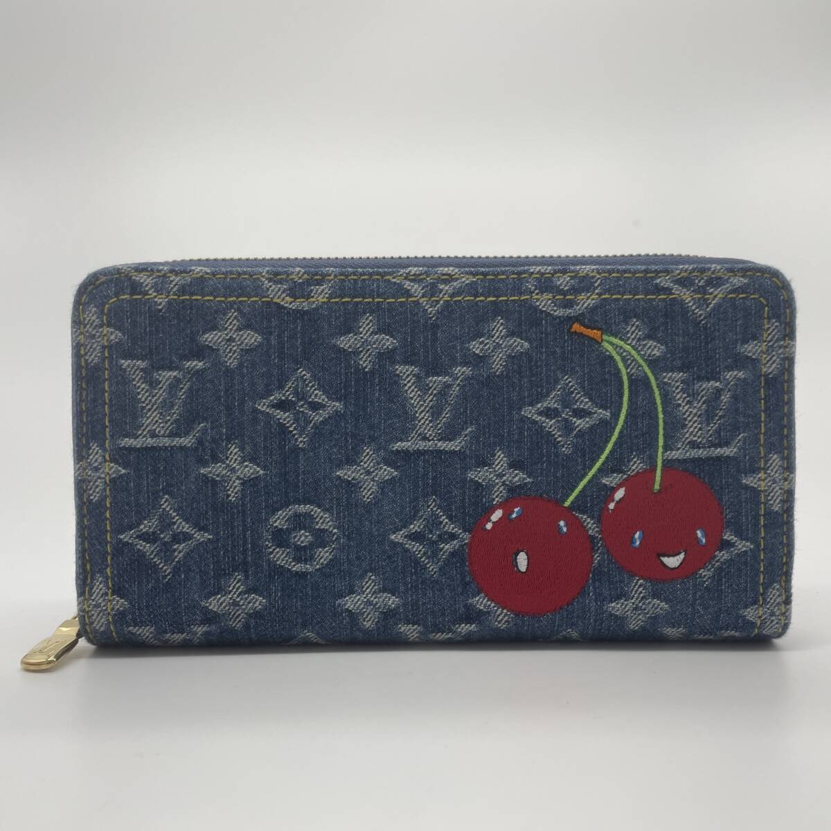 希少【LOUISVUITTON ルイヴィトン 村上隆 2025年 LV×TM ジッピーウォレット M23161 モノグラム チェリー デニム 長財布 コラボ 現行品】
