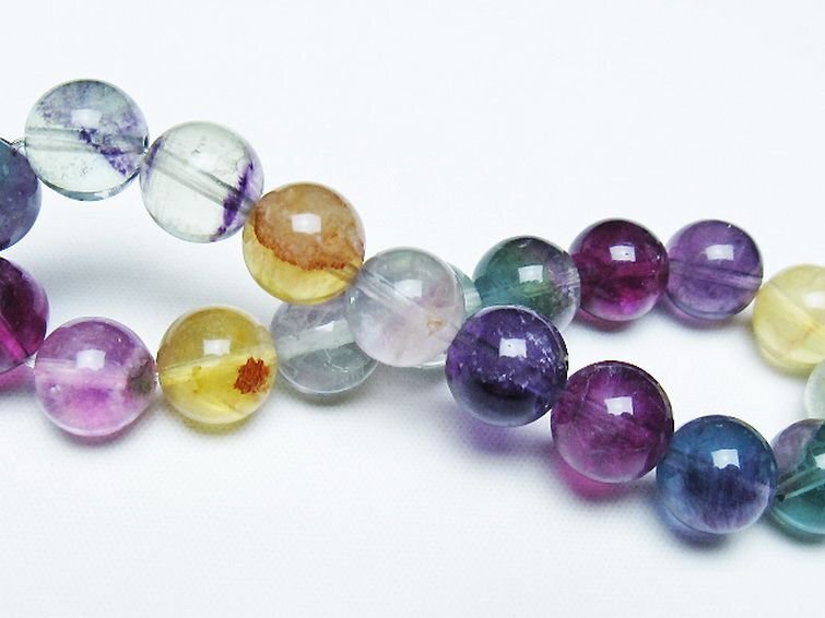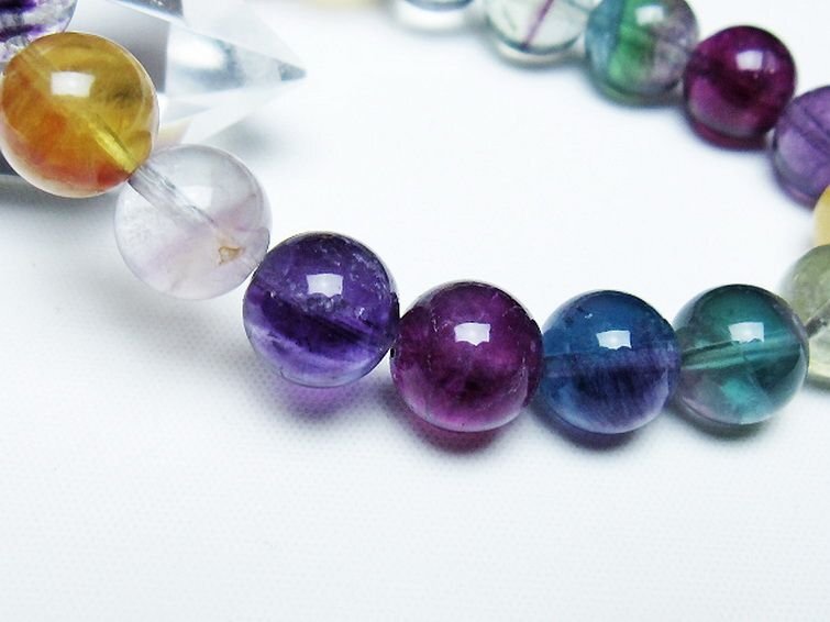 | ■商品名: フローライト ブレスレット ■商品ID: T229-5298 ■商品重量:約 33.2g ■商品サイズ:内周約:156mm(±5mm)粒直径約:10mm(±0.5mm) 【フローライト(蛍石)】 フローライトは鮮やかなカラーのグラデーションが美しい天然石で、トルマリンに次ぐカラーバリエーションを持つとされています。 フローライトの中に白い羽のような内包物が入ったものは「エンジェルフェザーフローライト」と呼ばれ、普通のフローライトに比べて癒しの効果に特化しているとされています。 白い内包物の正体は未だに解明されておらず、アラゴナイトの一種やゼオライト、クォーツなど諸説あります。 フローライトはラテン語で流れるという意味の「fluere」が由来となっており、その言葉どおり滞っていた気の流れを整えて心身と環境のバランスを調和させるエネルギーを持つとされています。 また「天才の石」とも呼ばれ、思考力と記憶力、集中力を高めるとされており、クリエイティブな能力を引き出すといわれています。 緑は癒し、紫は浄化、青は知性、黄色は希望など、色合いによって持つ意味や効果に違いがあるともされていますので、期待する効果によってフローライトを選ぶのもおすすめです。 ⇒ フローライトをもっと詳しく ◆ワンポイント情報 フローライトは硬度が低く、一方向に割れやすい劈開性を持つため衝撃を与えないようにしてください。 また、紫外線や水分も褪色や劣化の原因となりますので保管の際も注意が必要です。 |
