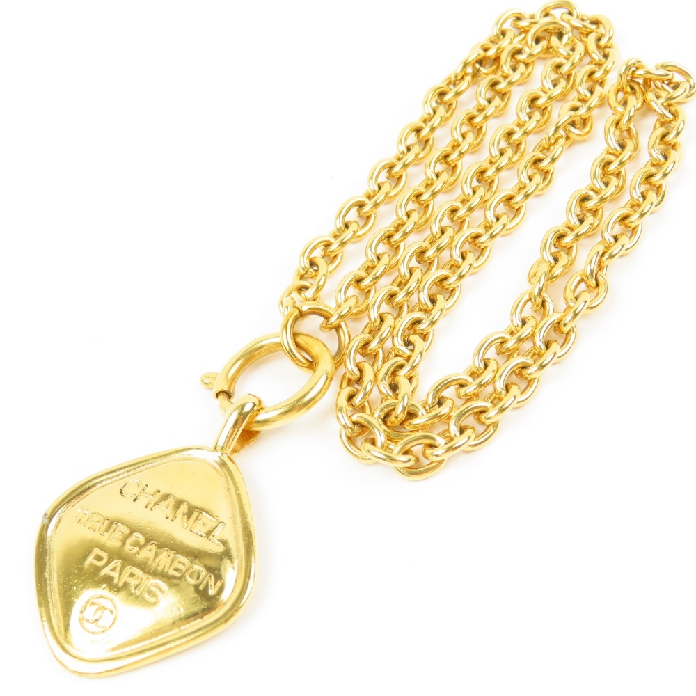 203504★1円スタート★CHANEL シャネル 極美品 カンボン 太チェーンネックレス プレートモチーフ 大型トップ 菱形 アクセサリー