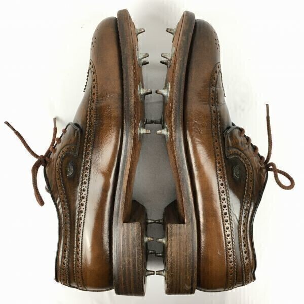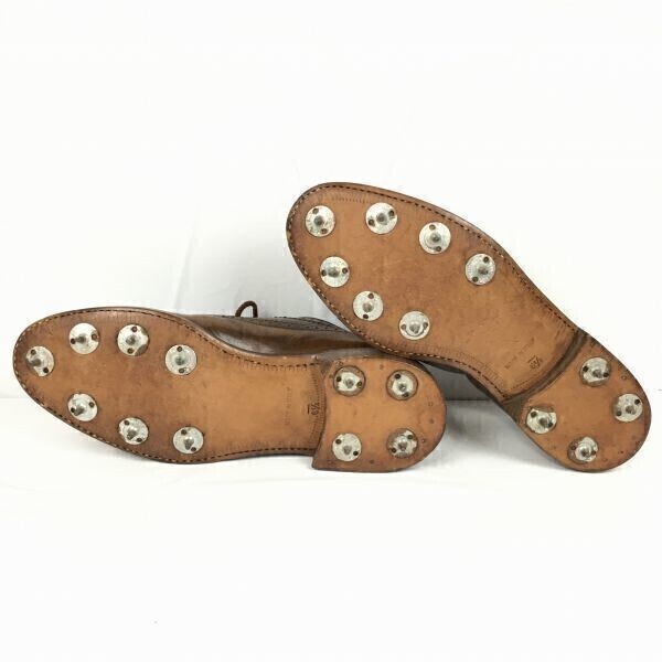 試着OK!adidas/アディダス 希少ビンテージ品 鉄スパイク ゴルフシューズ 茶 サイズ40A/25.0程度 スパイク 管NO.WZA-400