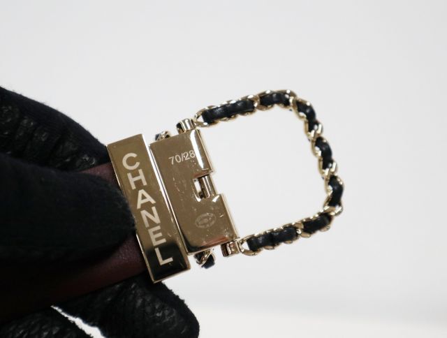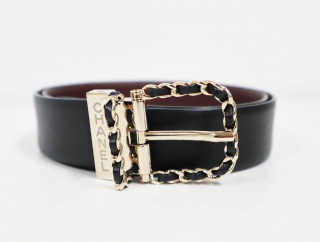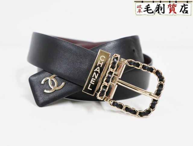 | CHANEL シャネル ベルト チェーン バックル ココマーク リバーシブル 70/28 ブラック ボルドー カーフスキン シャンパンゴールド金具 B23P AA8937 美品 ベルト |