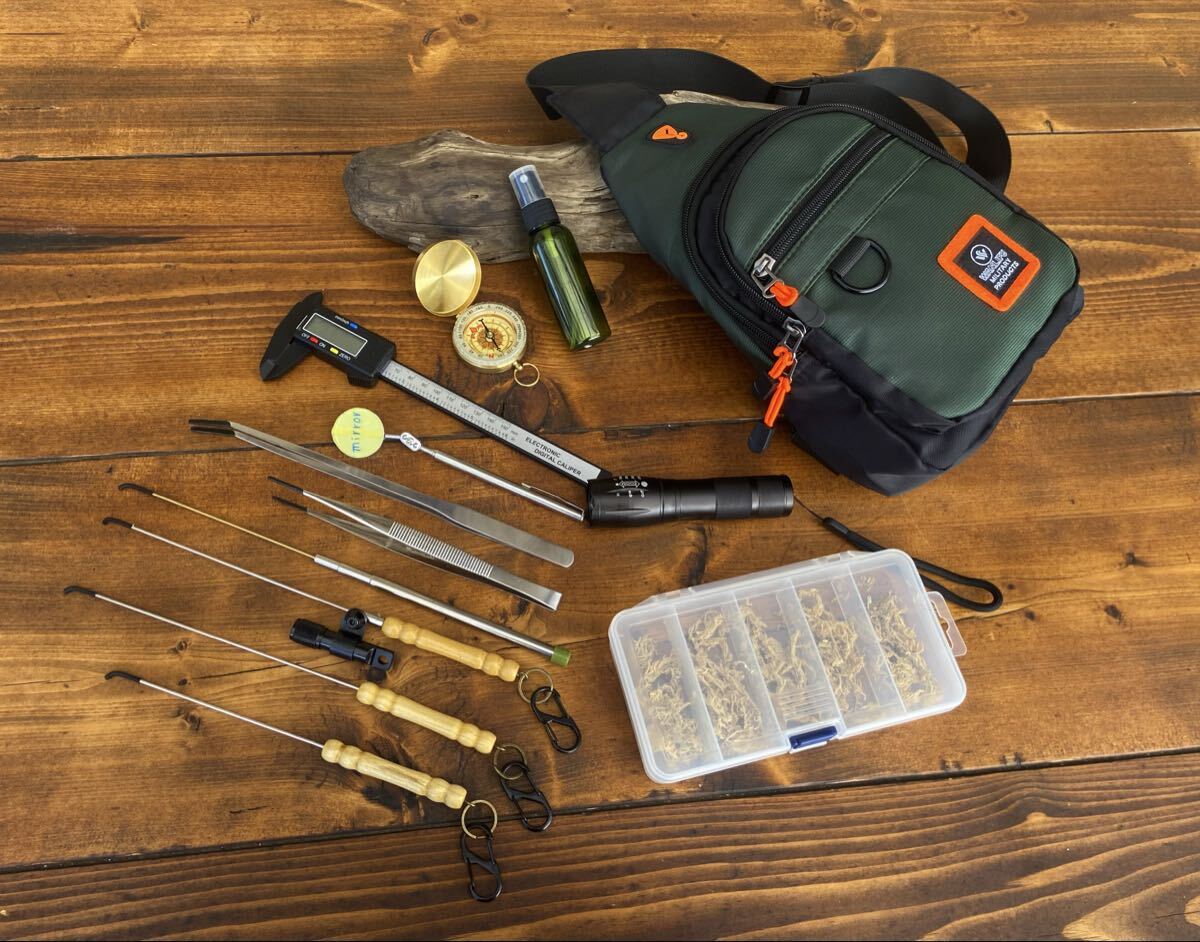 クワガタ採集セットです。オリジナル掻き出し棒をはじめクワガタ採集に役立つアイテム盛りだくさんです!!