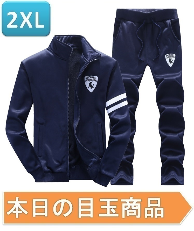 【今日の目玉】メンズセットアップ 上下セット ☆237 ネイビー 2XLサイズ ジャージ スウェット お兄系 部屋着 おしゃれ