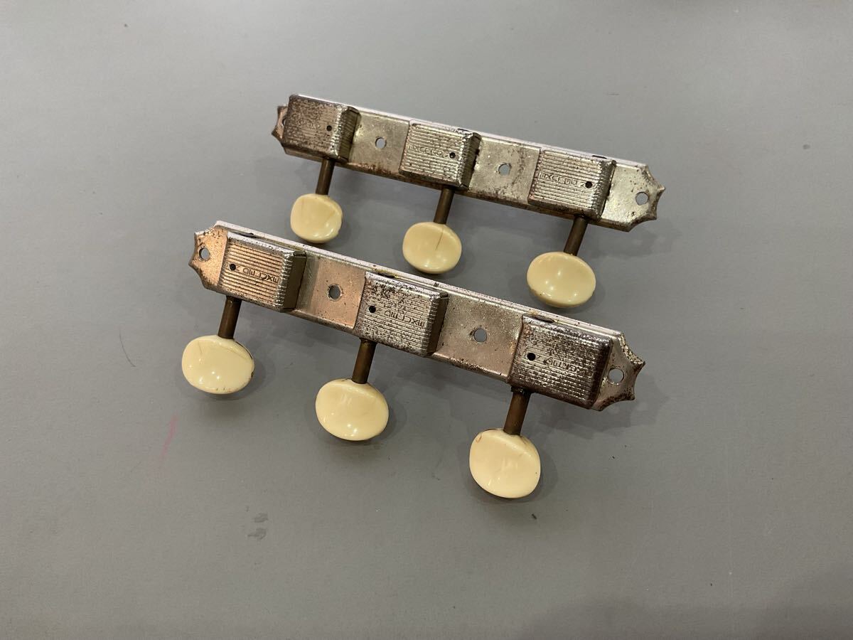 1960年製のkluson 3連ペグです。シングルライン オーバルボタンです。一個少し曲がりが有ります。
