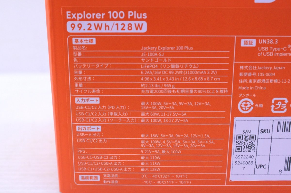 ●【未開封】Jackery/ジャクリ JE-100A ポータブル電源 バッテリー 99.2Wh アウトドア キャンプ 車中泊 防災 非常時【11055835】