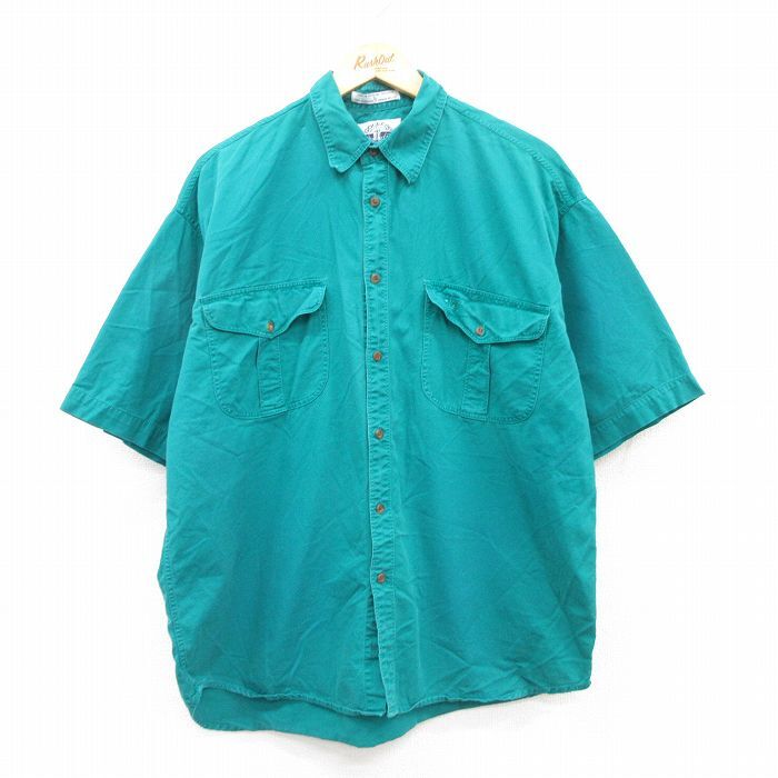 【商品名】 XL★古着 ドッカーズ 半袖 シャツ メンズ 90年代 90s ワンポイントロゴ コットン 緑