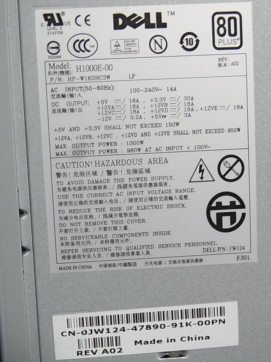 DELL Precision T7400 純正1000W電源 です。