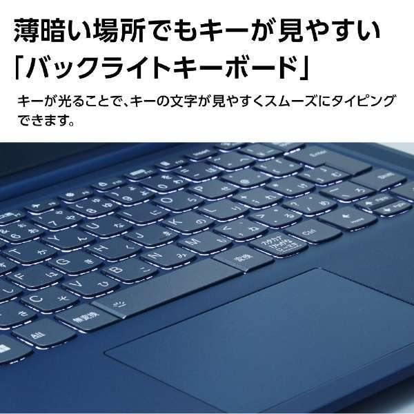 また、バックライトキーボードで薄暗くてもキーが光ってスムーズにタイピングできます。