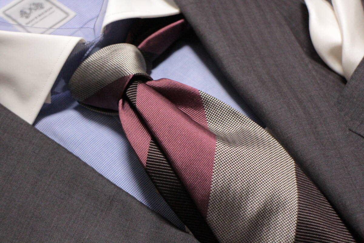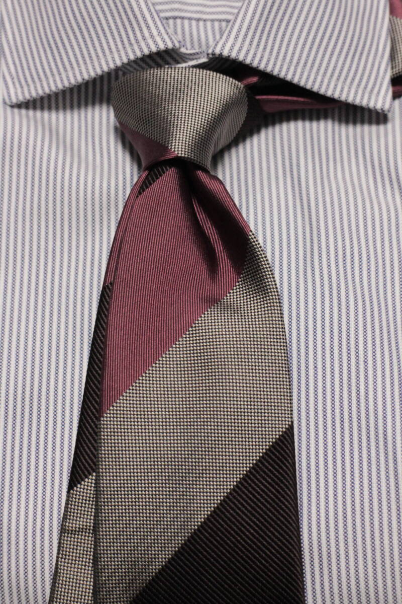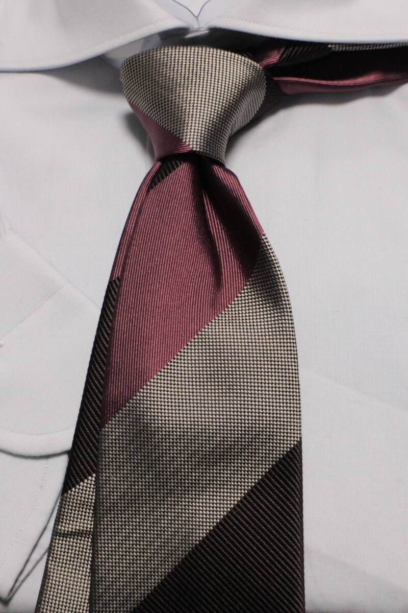 融合させた、とても凝った段落ちストライプのレジメンタルに仕上がっています。