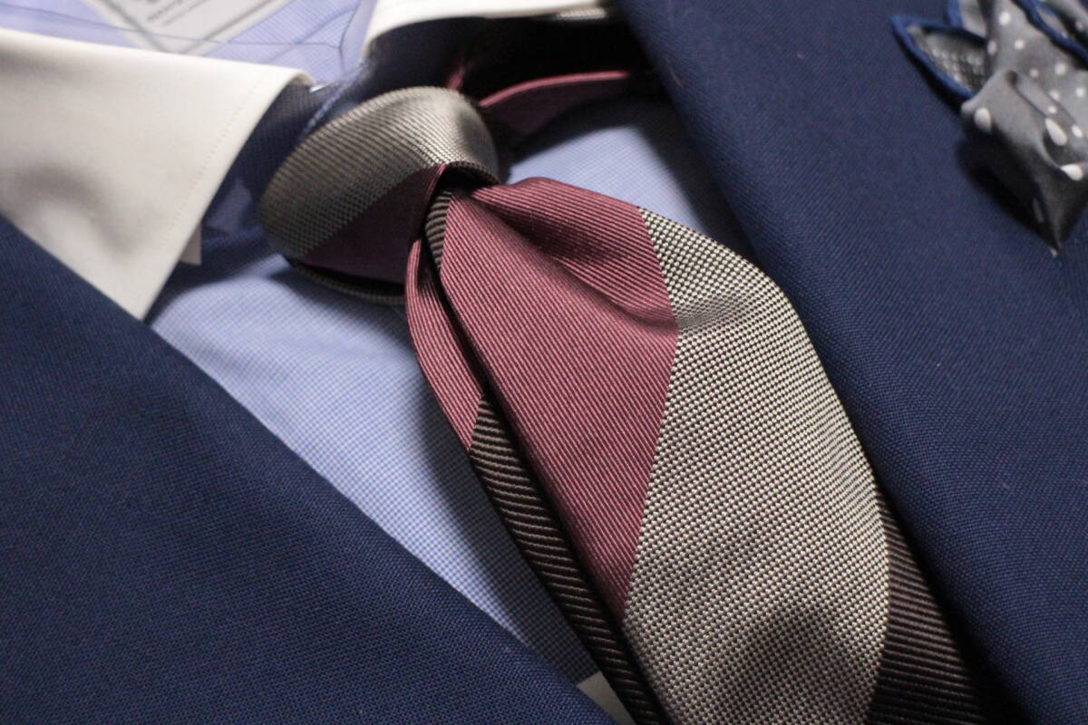 レジメンタル柄。シンプルなシャツに合わせるだけで、存在感のある素敵な