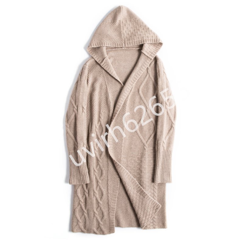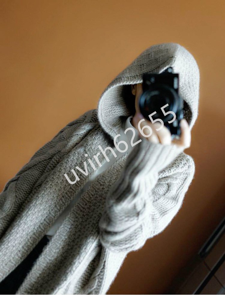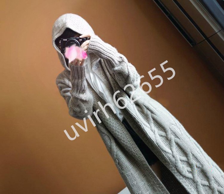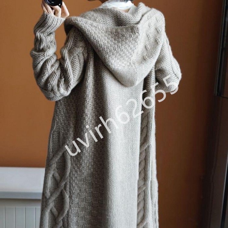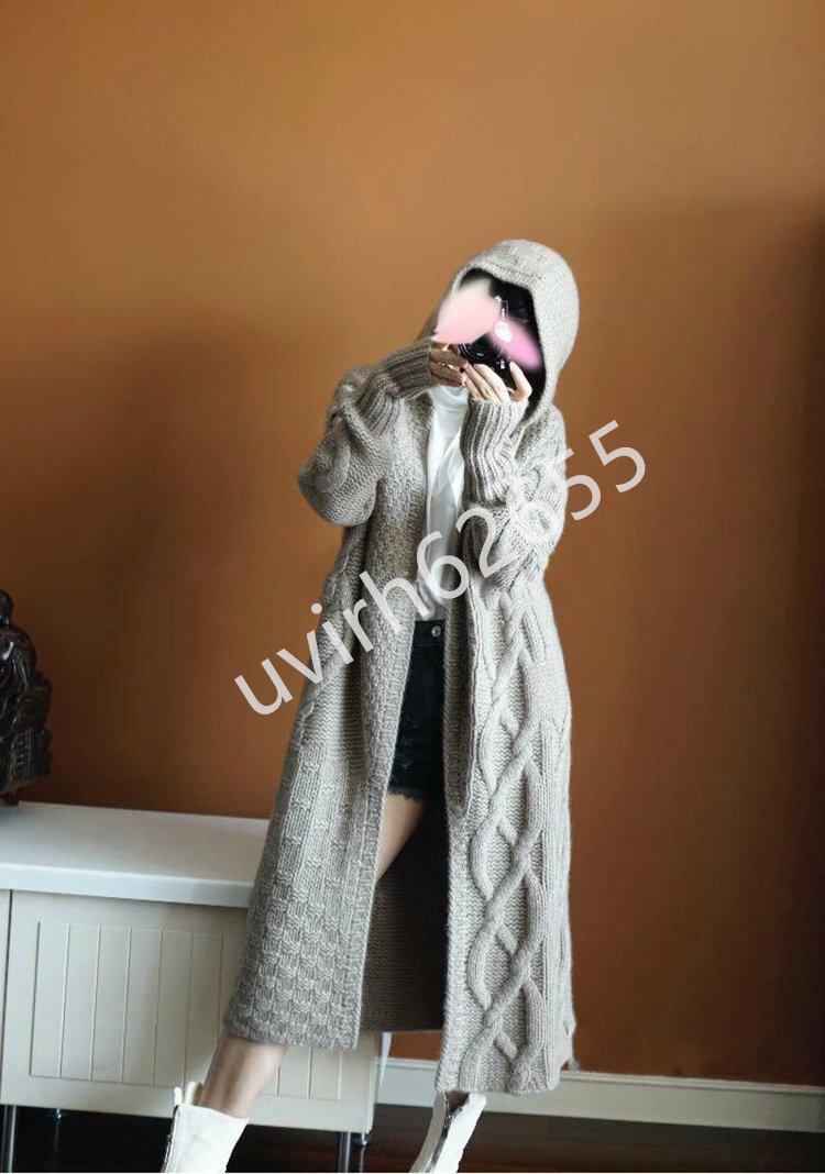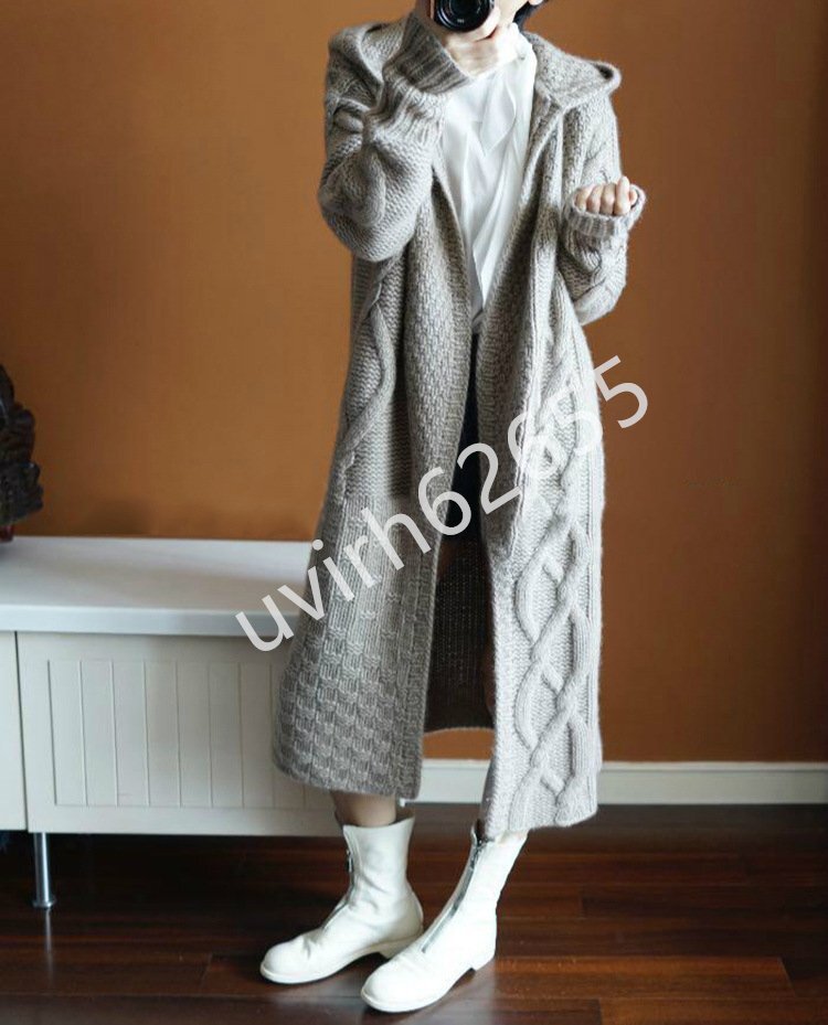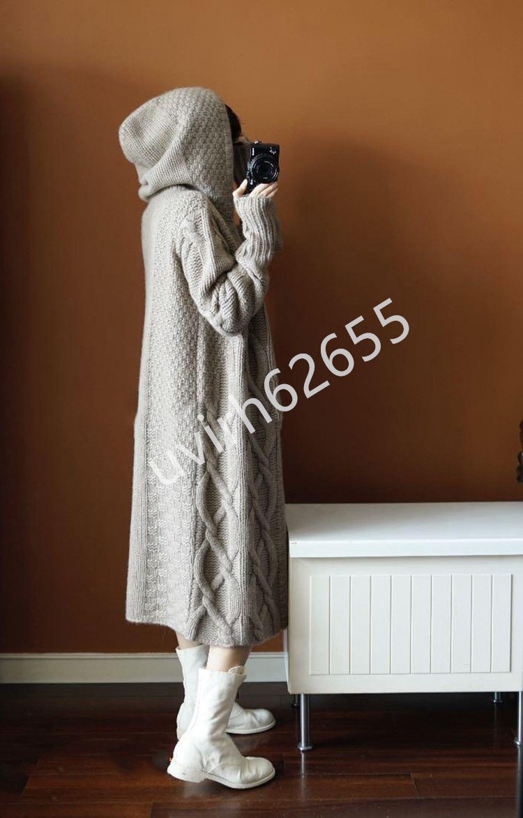 冬新品★レディース ニットセーター フード付き カーディガン アウター カシミヤター 編み切り替えニット ロング丈 おしゃれ 3色の選択可